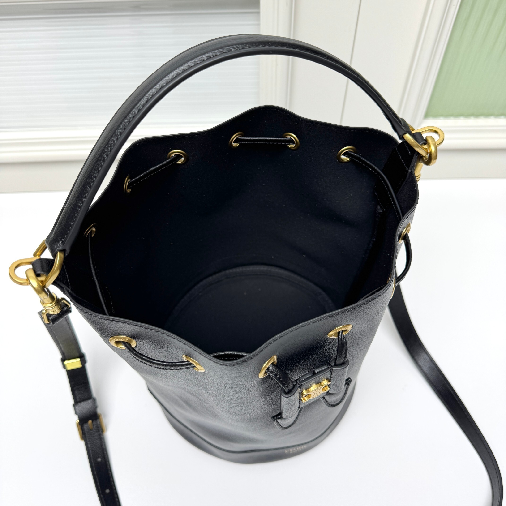 本バッグの魅力は「セリーヌの象徴的プリント」と「抽绳水桶の職人技」の融合にあります。