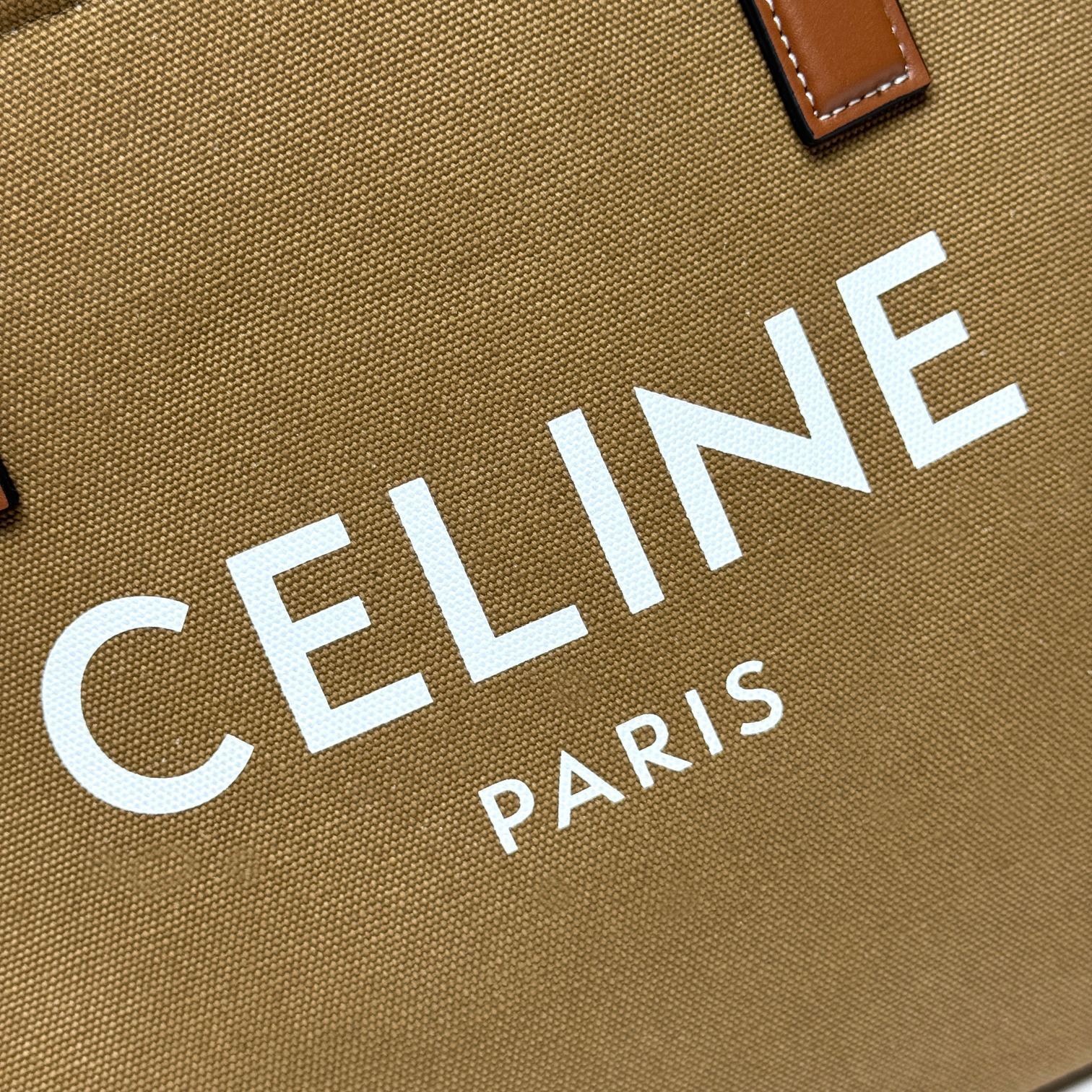 セリーヌ CABAS CELINE 横型トートバッグ|プリントキャンバス×小牛革(46%綿+54%牛革)|肩背/手提|内側ジッパーポケット