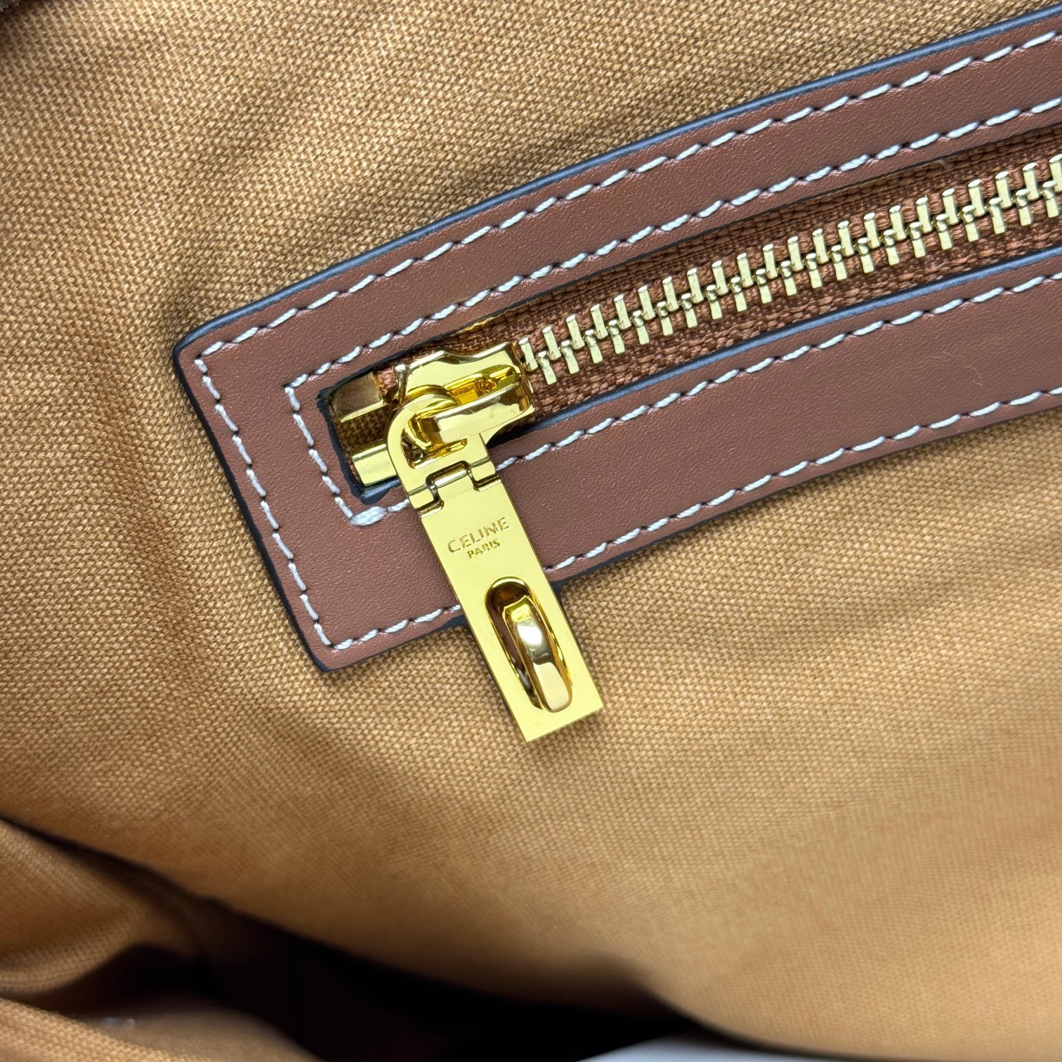 ・46%綿+54%小牛革の混紡キャンバス:本体の主要部分に使用した高密度混紡素材は、綿の「軽量感と通気性」と小牛革の「しなやかさと耐久性」を両立。表面のアーティスティックなプリント(セリーヌ定番モチーフを抽象化)が「遠くからでも視認できるアイコン性」を確立。染色工程で「経年変化でも色褪せにくい深み」を再現。