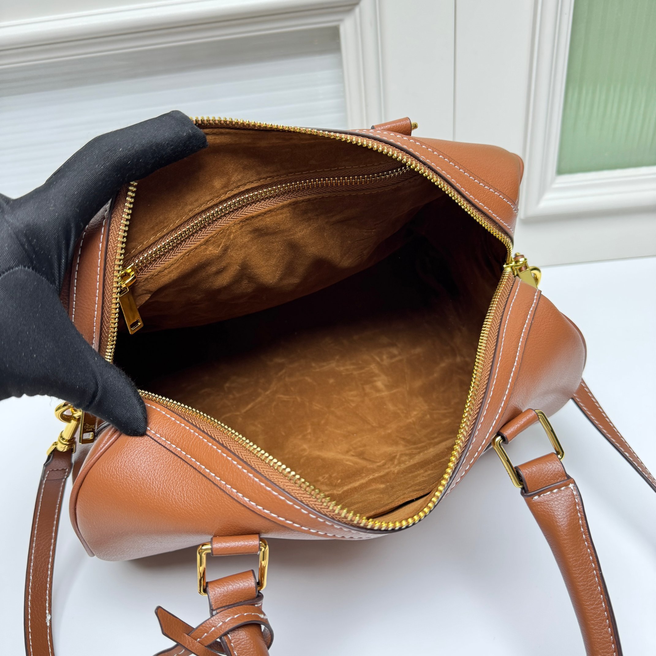 ・シンプル流麗ラインの力:ボストン型の基本フォルムに直線と曲線の絶妙なバランスを施し、「過剰な装飾を排したセリーヌらしさ」を体現。縫製ラインは「内側に隠れたダブルステッチ」で強度を確保し、「軽さ」と「型崩れしにくい耐久性」を両立。