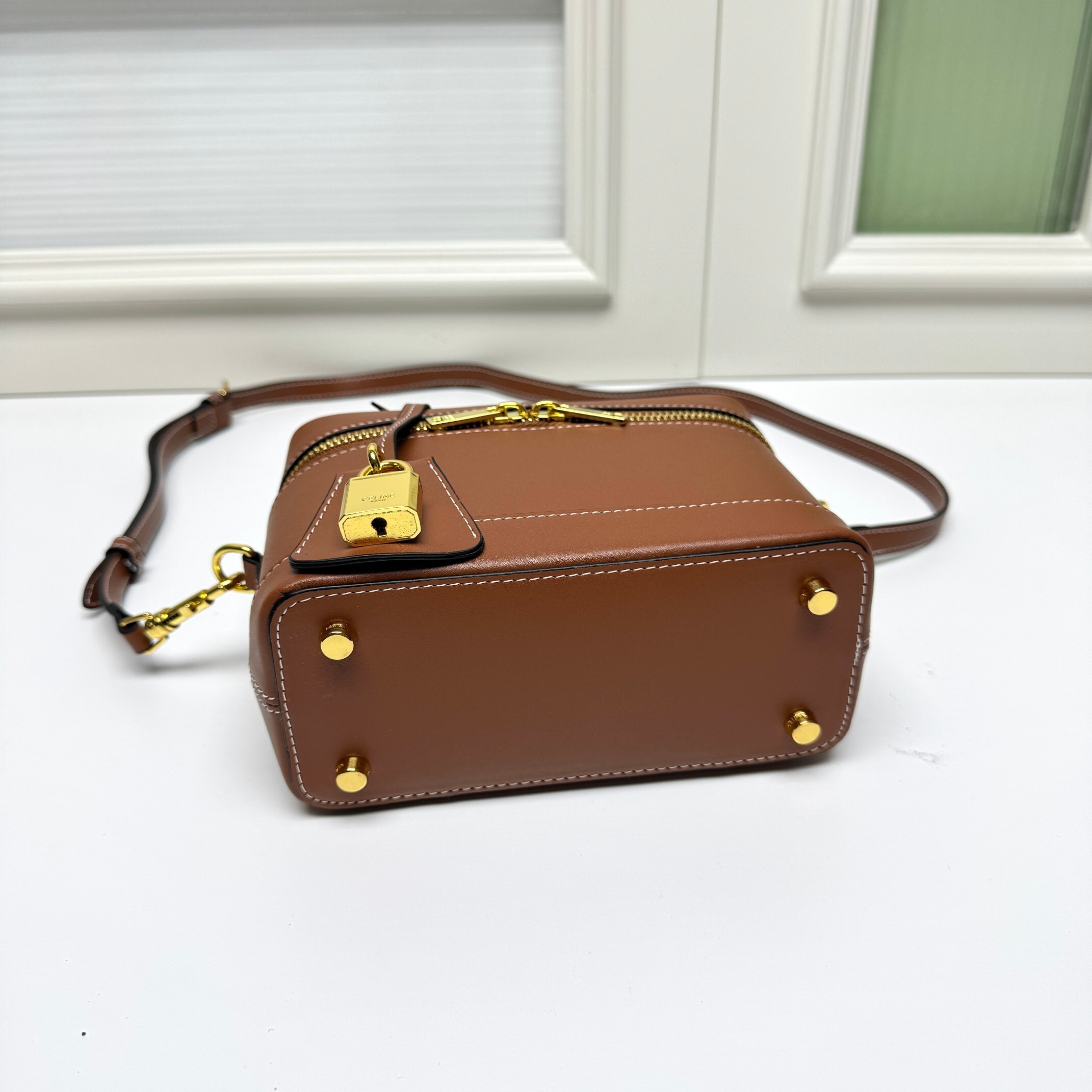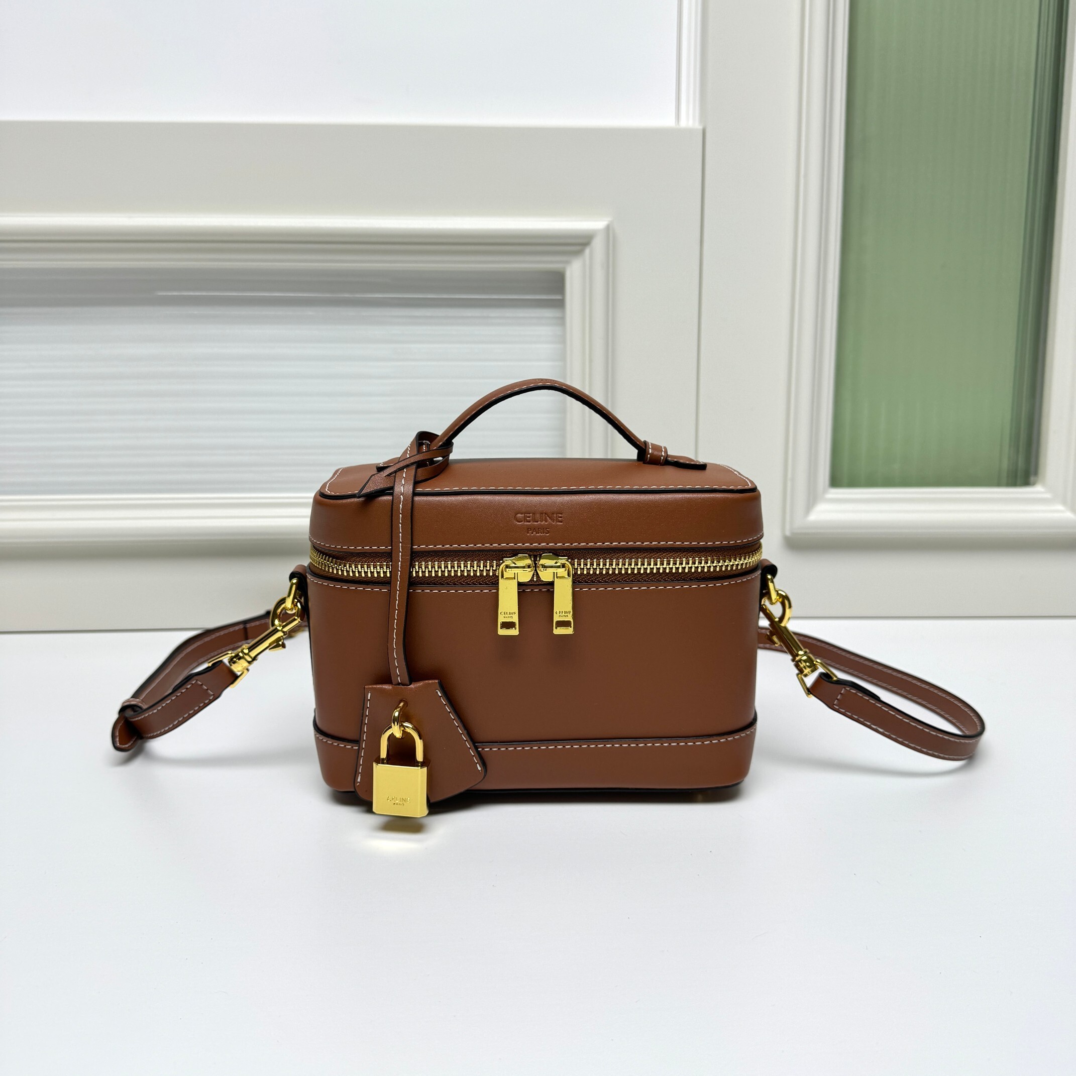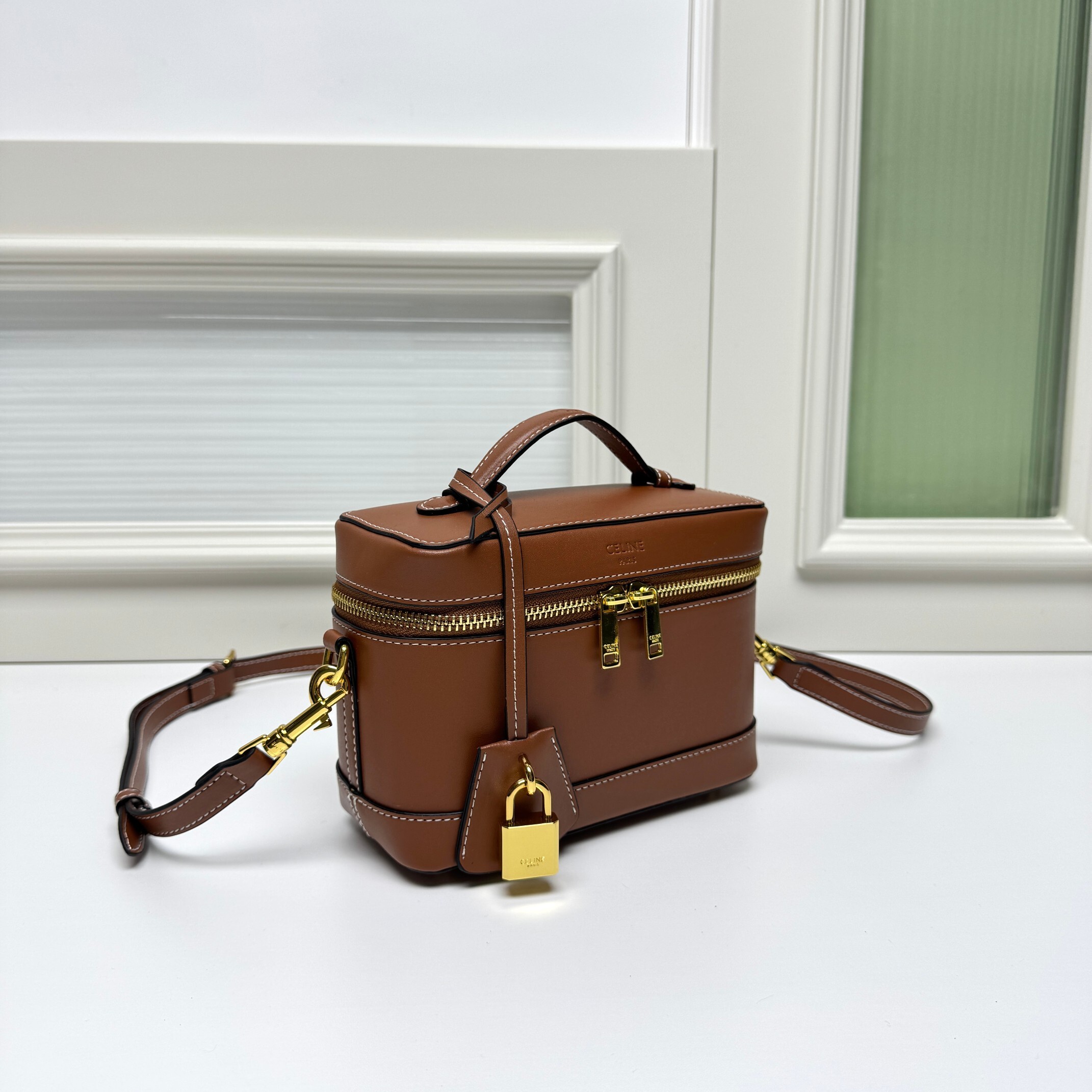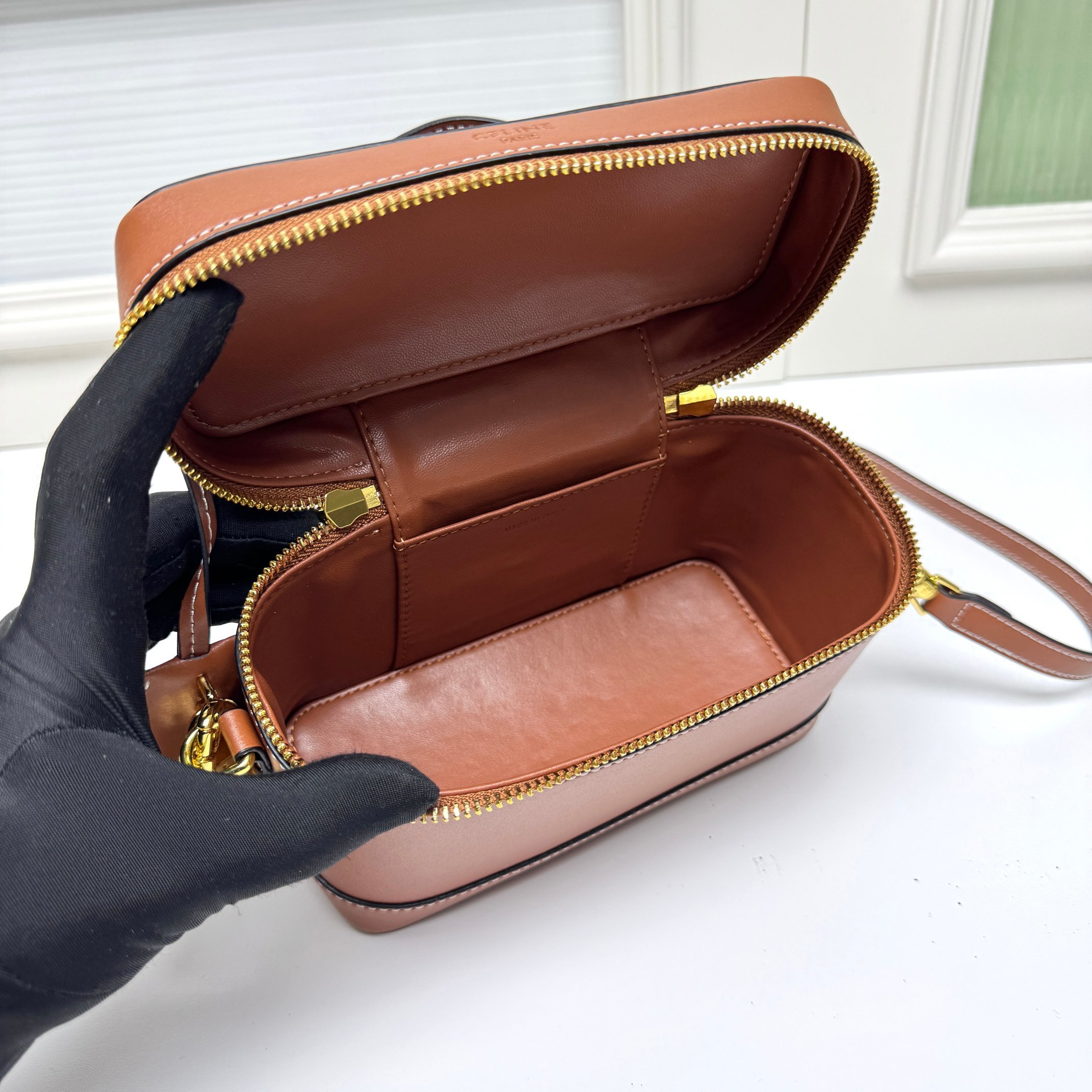 セリーヌ CE VANITY 化粧ポーチ|MAISON CE着想×初回限定|天然牛革(ベビーカーフ)×トリオンフ鎖インスピレーション|黄褐色TRIOMPHEトリム|18×10×13cm|精巧で実用的なクラシック