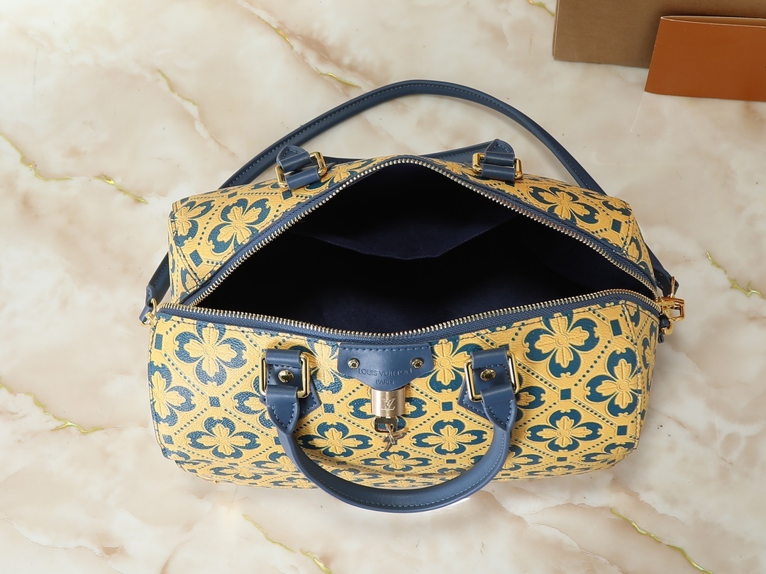 デザイン:Speedy 25 手袋 / 牛革(フランス産) / シルクスクリーン印刷(ミルフルール繁花纹样) / トランクハードウェア(金属製・LVロゴ刻印) / レザーエッジ(対照色) / 多背法(手提ち・肩背・斜め掛け) / 牛革トップハンドル / 取り外し可能調節ショルダーストラップ(牛革製) / ダブルジッパー留め具(LVロゴプレート)