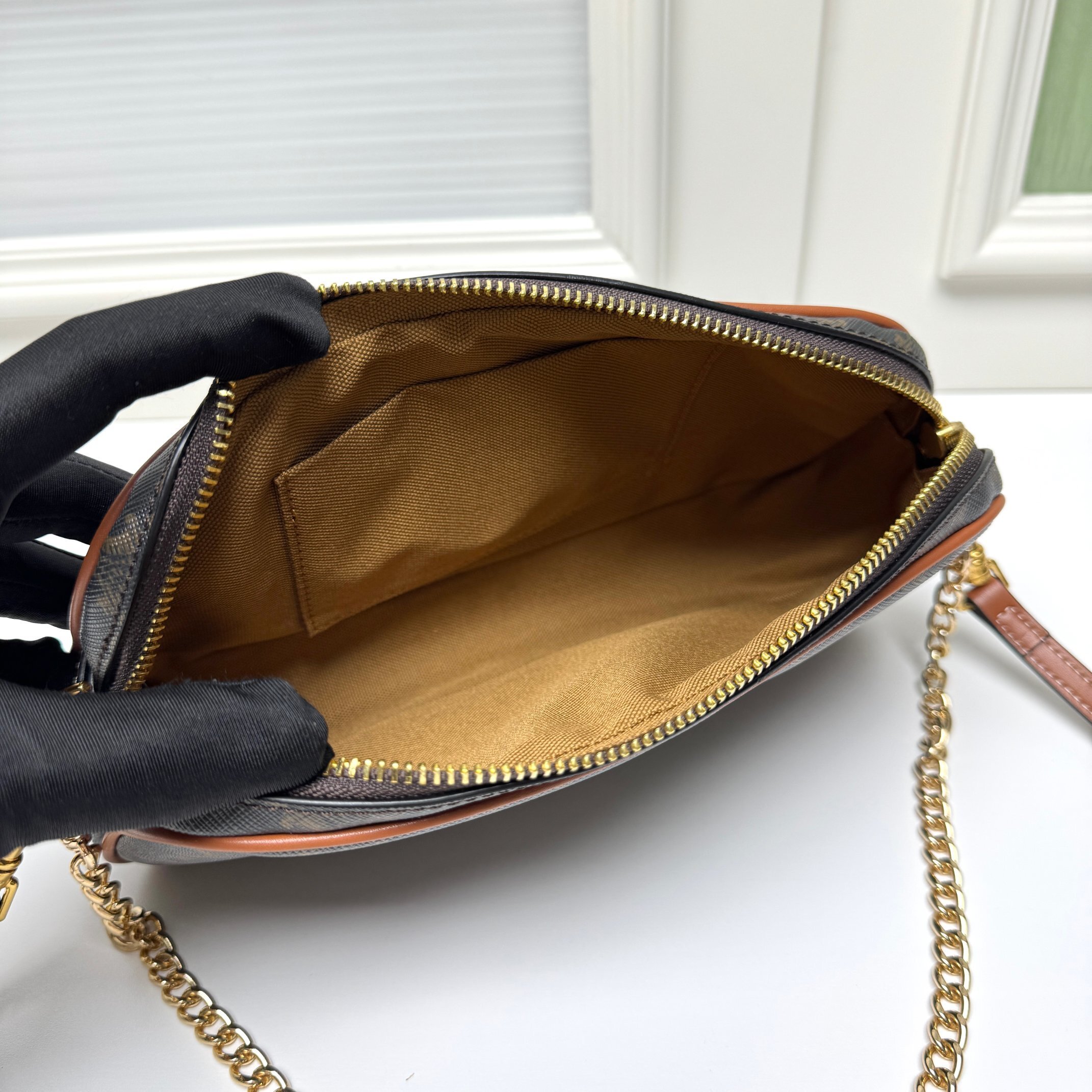 セリーヌ(CELINE)CEシリーズチェーン包新作「MULTIロゴプリント牛革ハンドバッグ」,は「クラシックな老花(モノグラム)面料」と「皮包边の温もり」を融合させた軽量実用の傑作です。26cm×6cm×13cmの細長シルエットに、「皮肩带×チェーン肩带の2WAY背法」と「耐造(たいぞう)で使いやすい設計」を凝縮。「新作上陣」の喜びと「持つたびに感じるCELINEの静寂な高級感」が「日常の小物を優雅に持ち運ぶ幸せ」を届け、今季「通勤から休日まで、TPOを選ばない万能チェーン包」として君臨します。