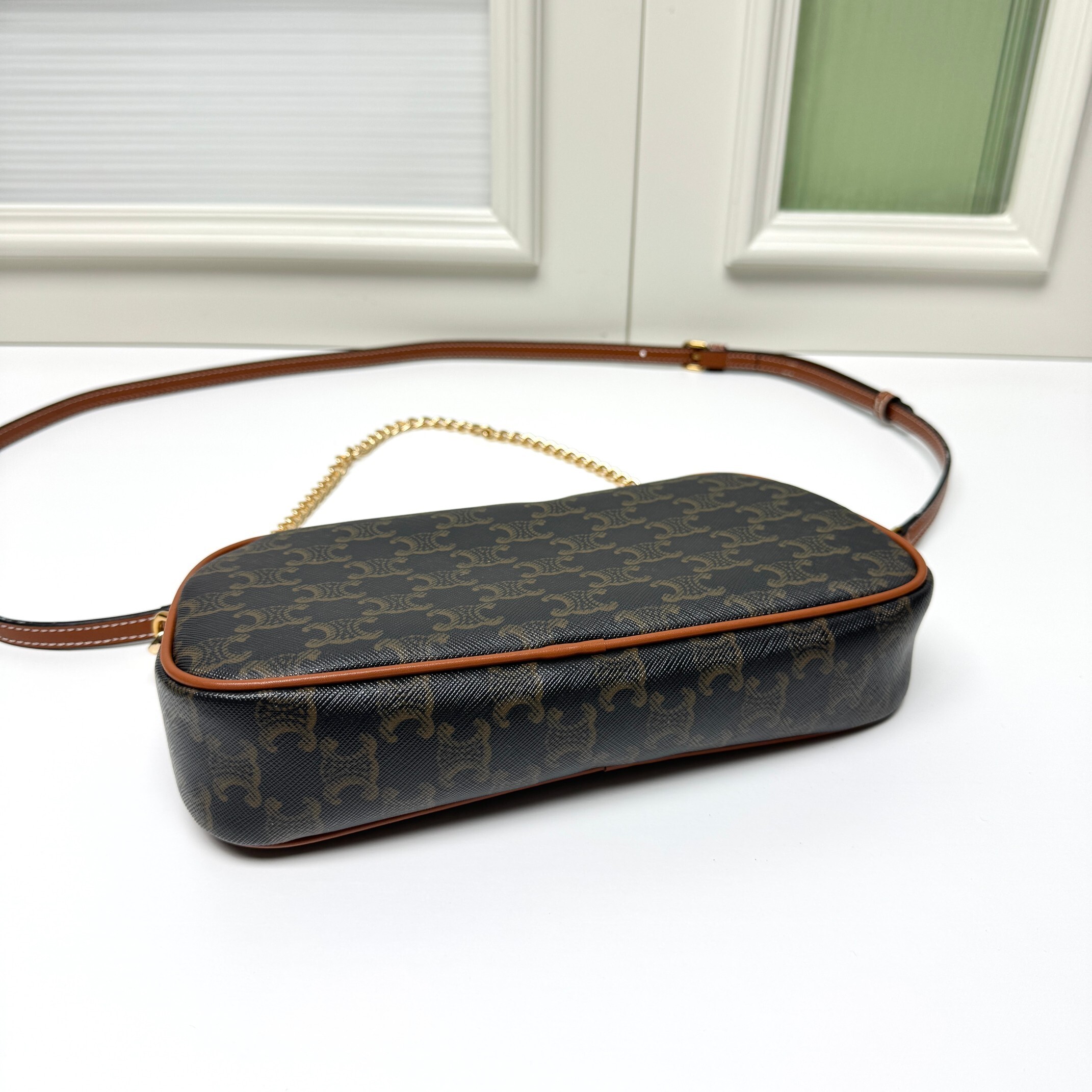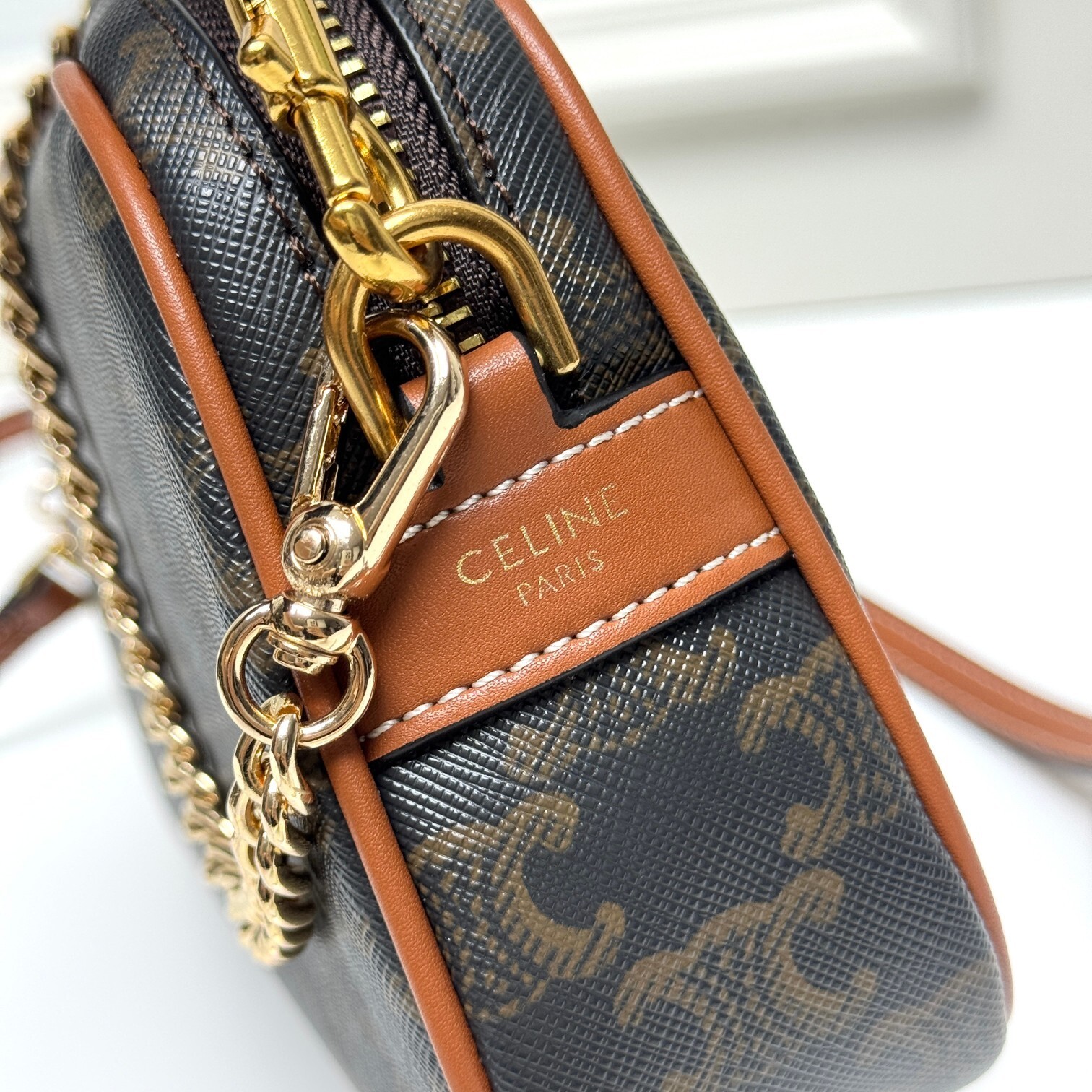 セリーヌ CEチェーンバッグ新作|MULTIロゴプリント牛革ハンドバッグ|クラシックモノグラム×皮エッジ|皮/チェーン2WAYショルダー|26×6×13cm|軽量耐造の実用美学