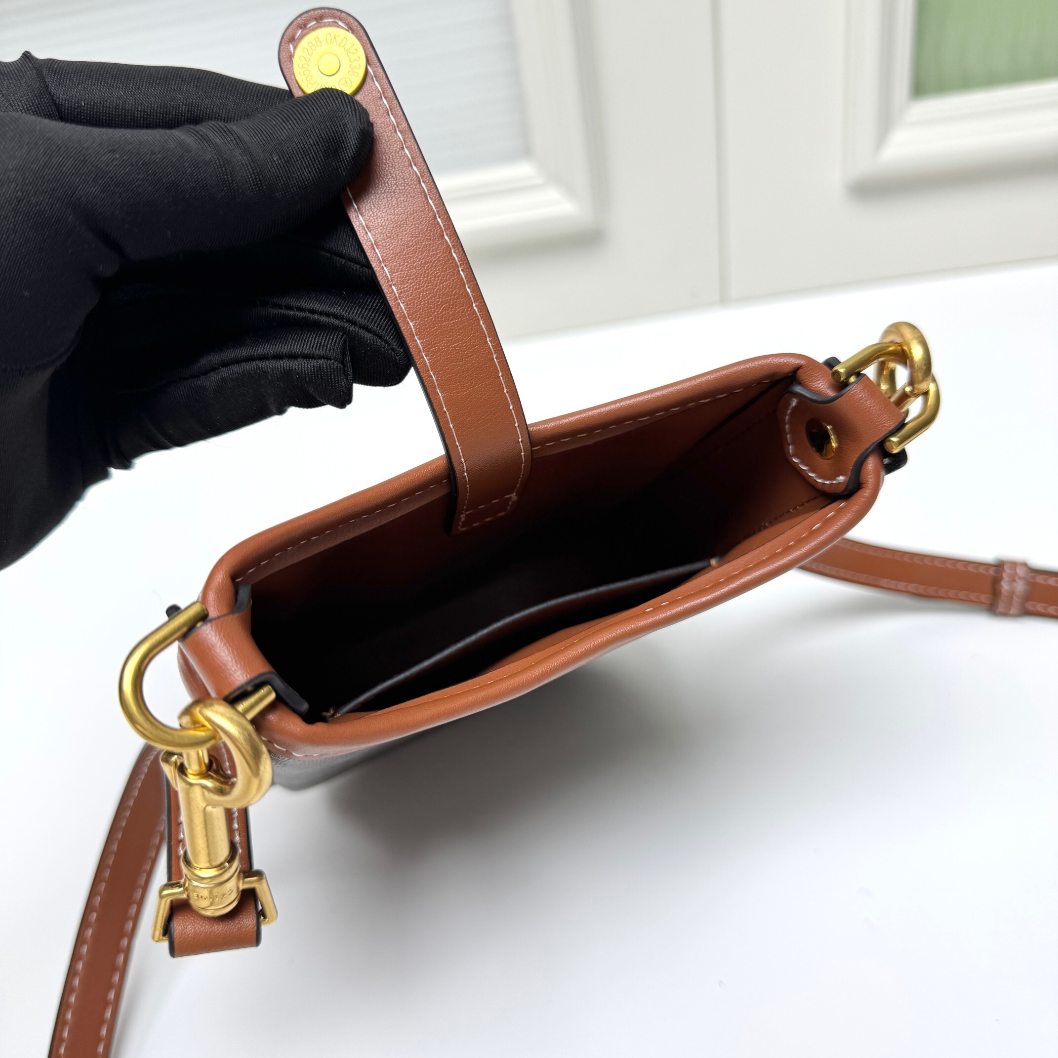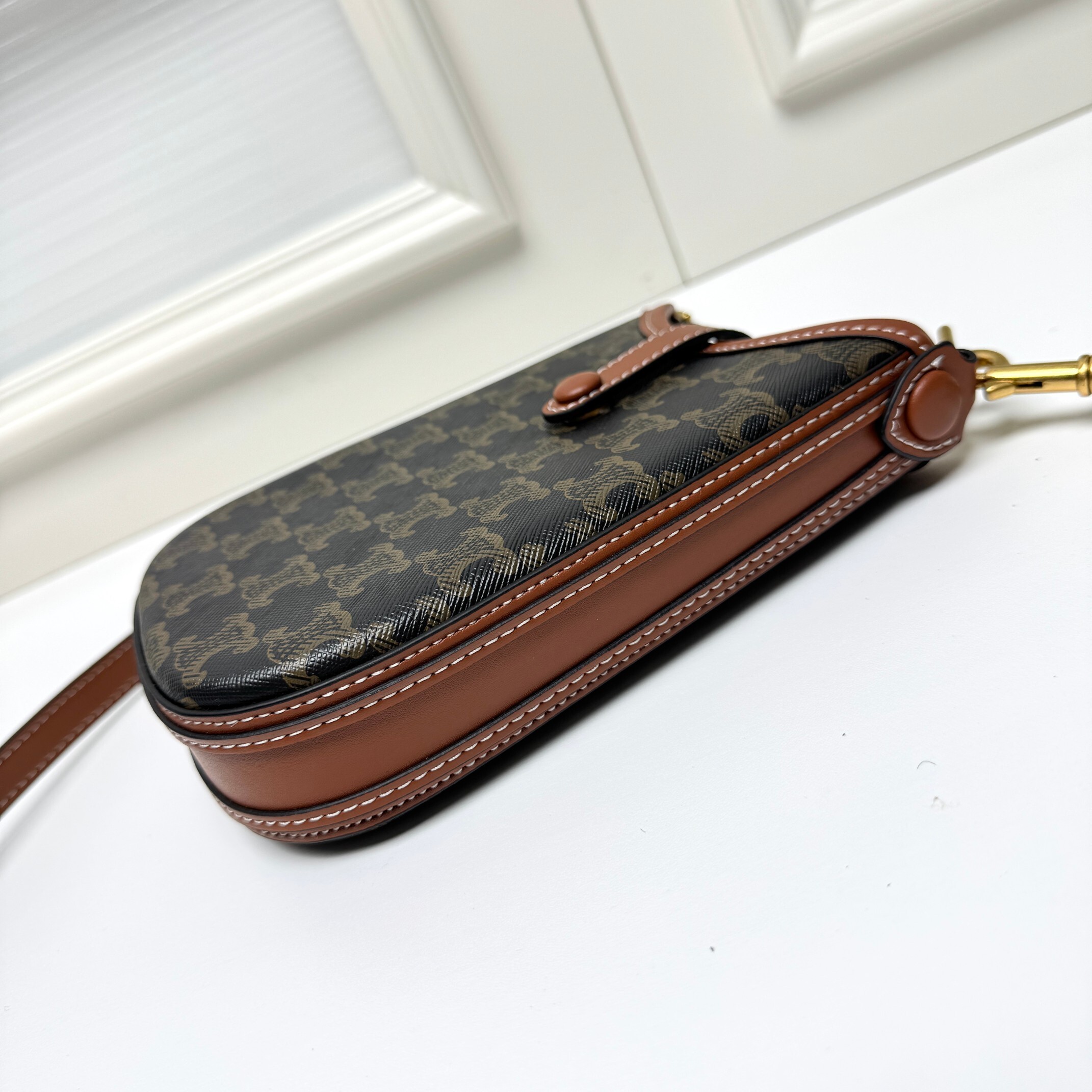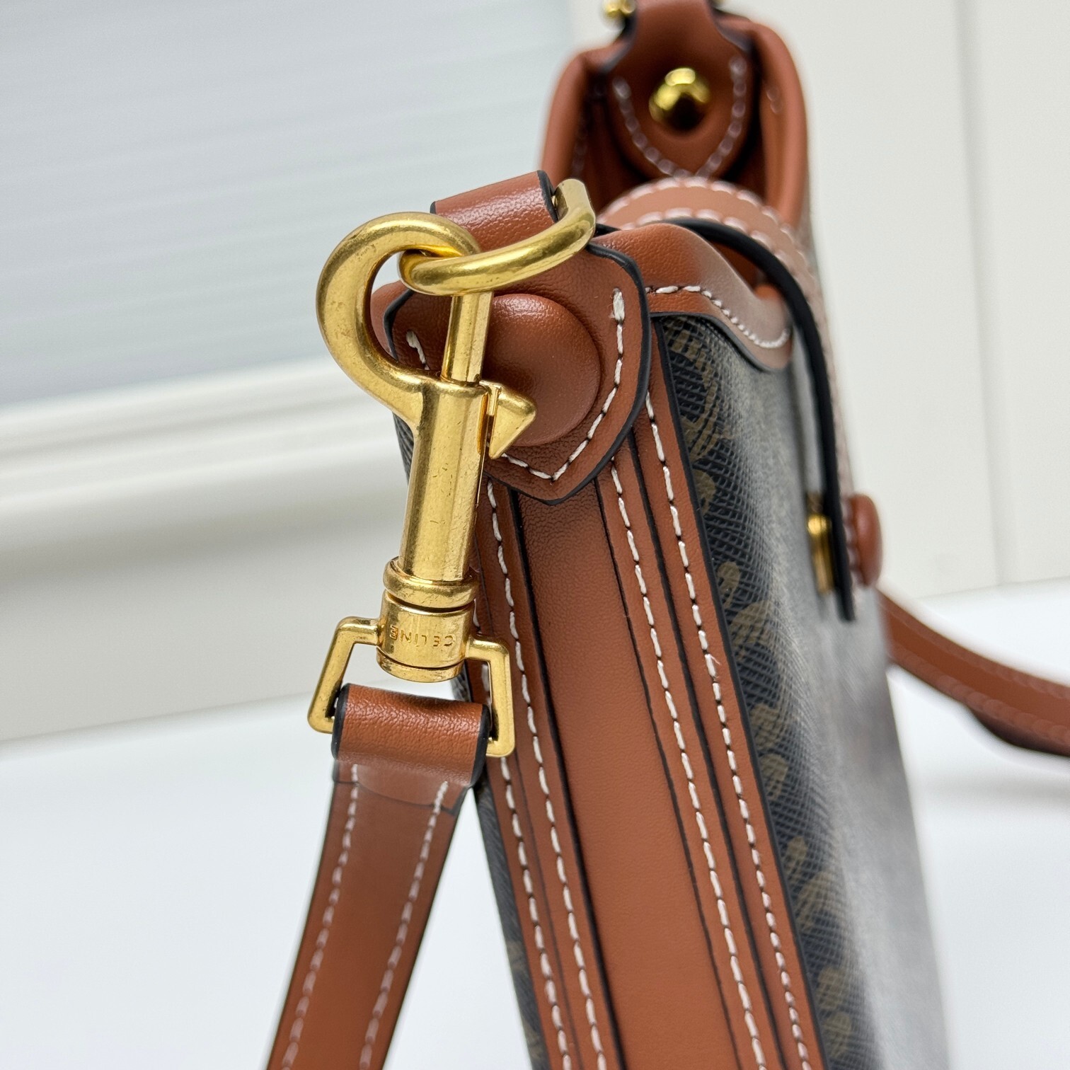 ・ 調節可能ショルダーの自由:長さ約80-110cmに調節可能な牛革ショルダーストラップ(太さ約1cm)が「身長150-170cmの全女性にフィット」。留め具にCELINEロゴ刻印リングを配し、細部まで品質を感じる(「肩带长度可以调节」の所以)。