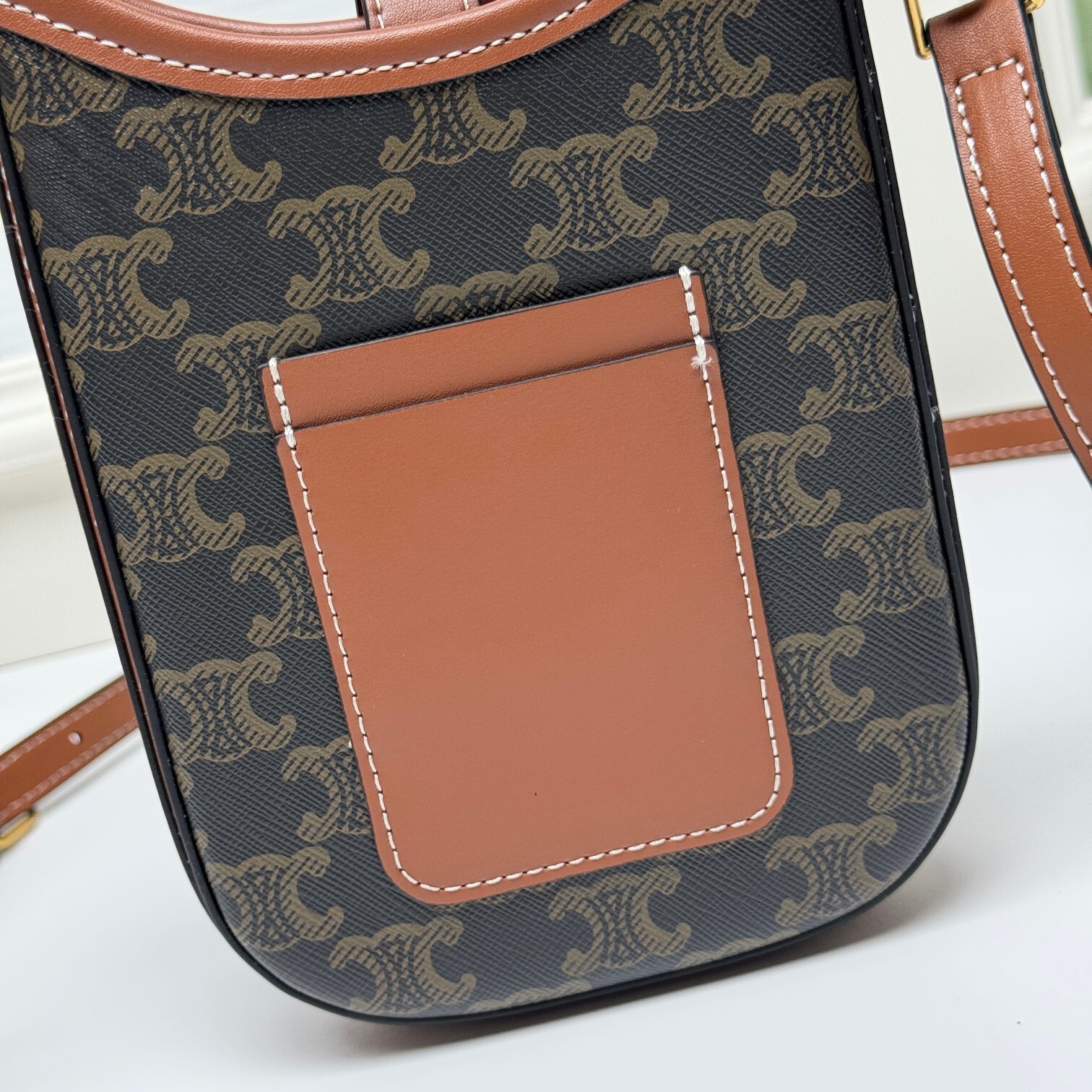 セリーヌ CE新作 スマホポーチ|大容量×挺括シルエット|調節可能ショルダー|14×20×4cm|日常使いの万能アイテム