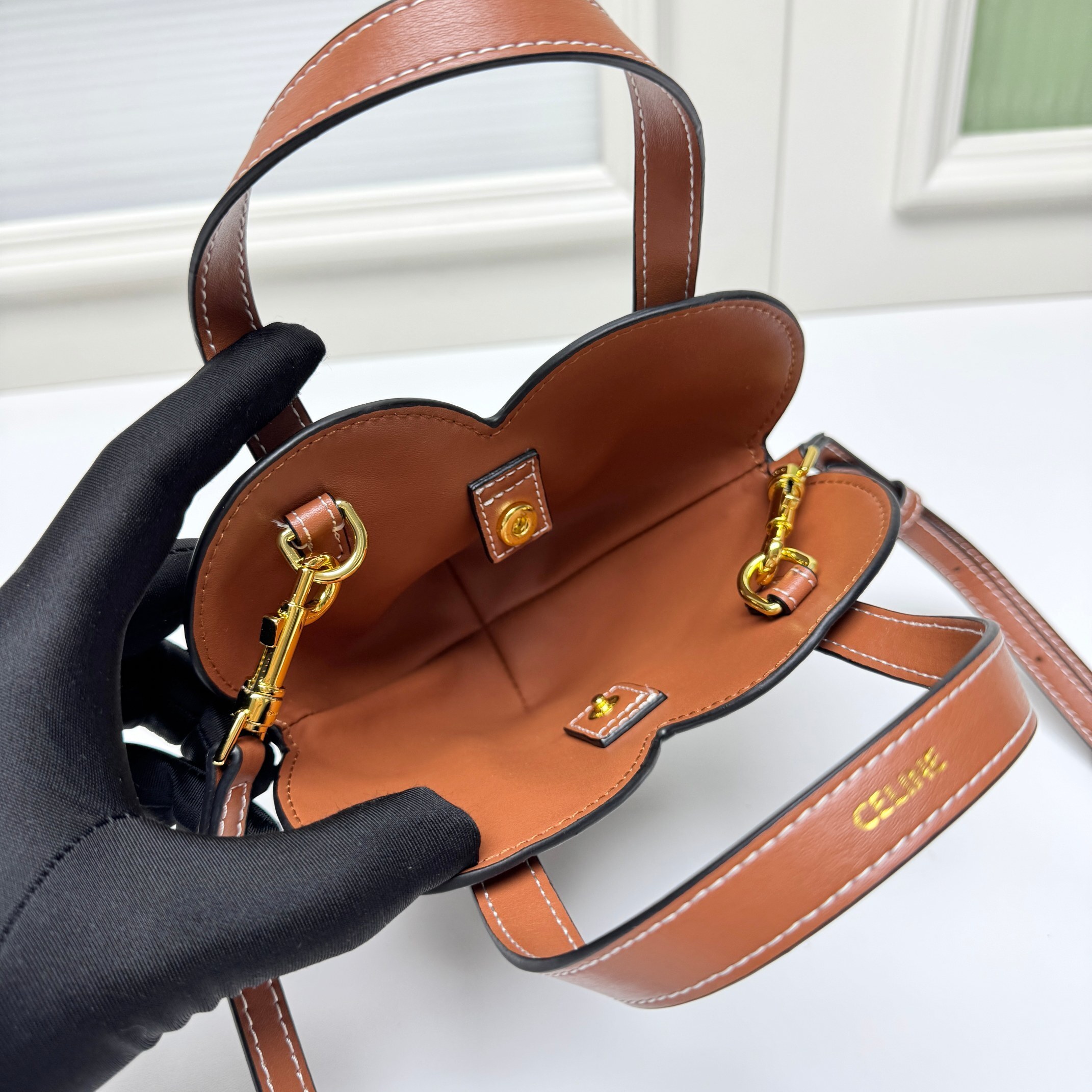 ・ 職人技の証:縫製ラインは「内側に隠れたシングルステッチ」を採用し、「ミニサイズながら型崩れしにくい耐久性」を確保。底部に薄型補強板を内蔵し「自立性」を向上(テーブルに置いても倒れにくい)。