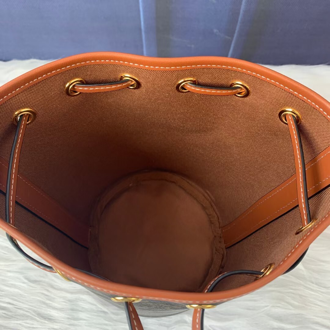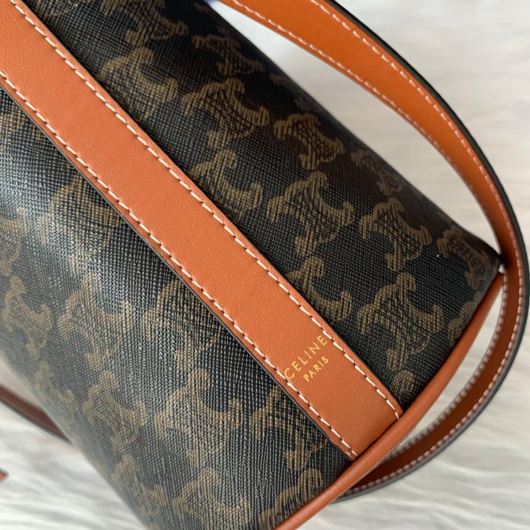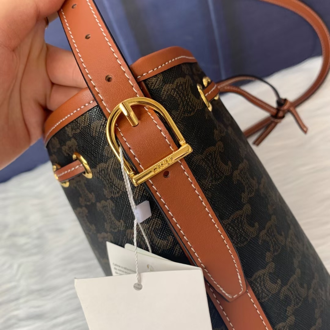 セリーヌ ロゴプリント スモール ドローストリングバッグ|合成皮革/牛革|斜め掛け/肩背|ドローストリング皮革ベルト×調節肩带(50cm)|14×21×14cm|静寂美学の迷你万能アイテム
