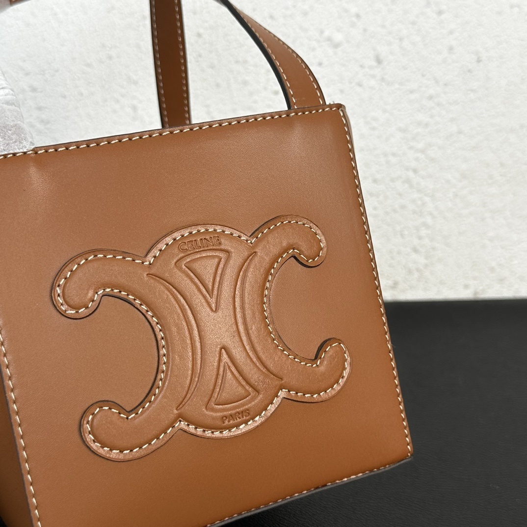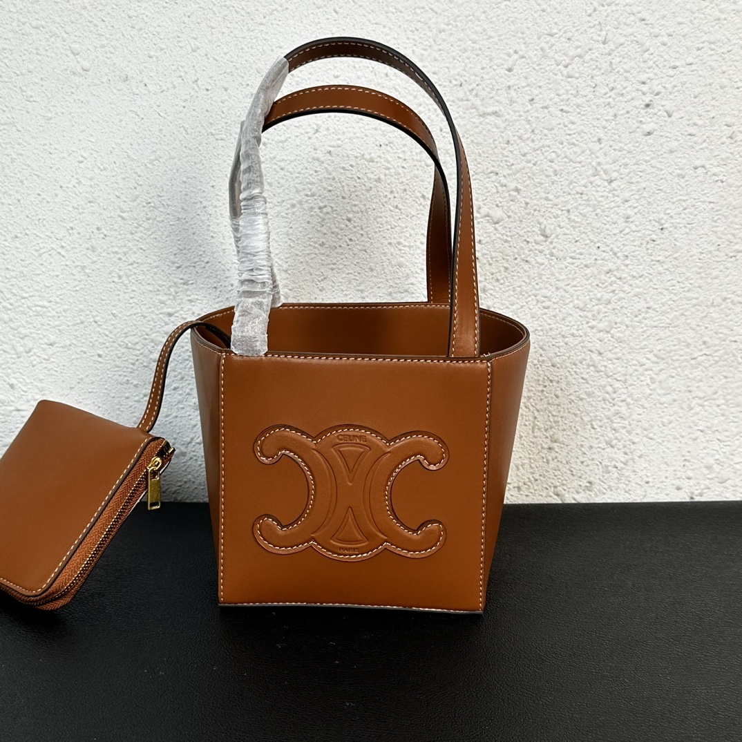 セリーヌ 新作 カゴ型バケットバッグ(菜篮子)|ブラウン老花×トリオンフロゴ|14.5×14.5×15cm|万能搭配・キュート可愛らしさ|小内袋付き|クラシック×童趣の静寂美学