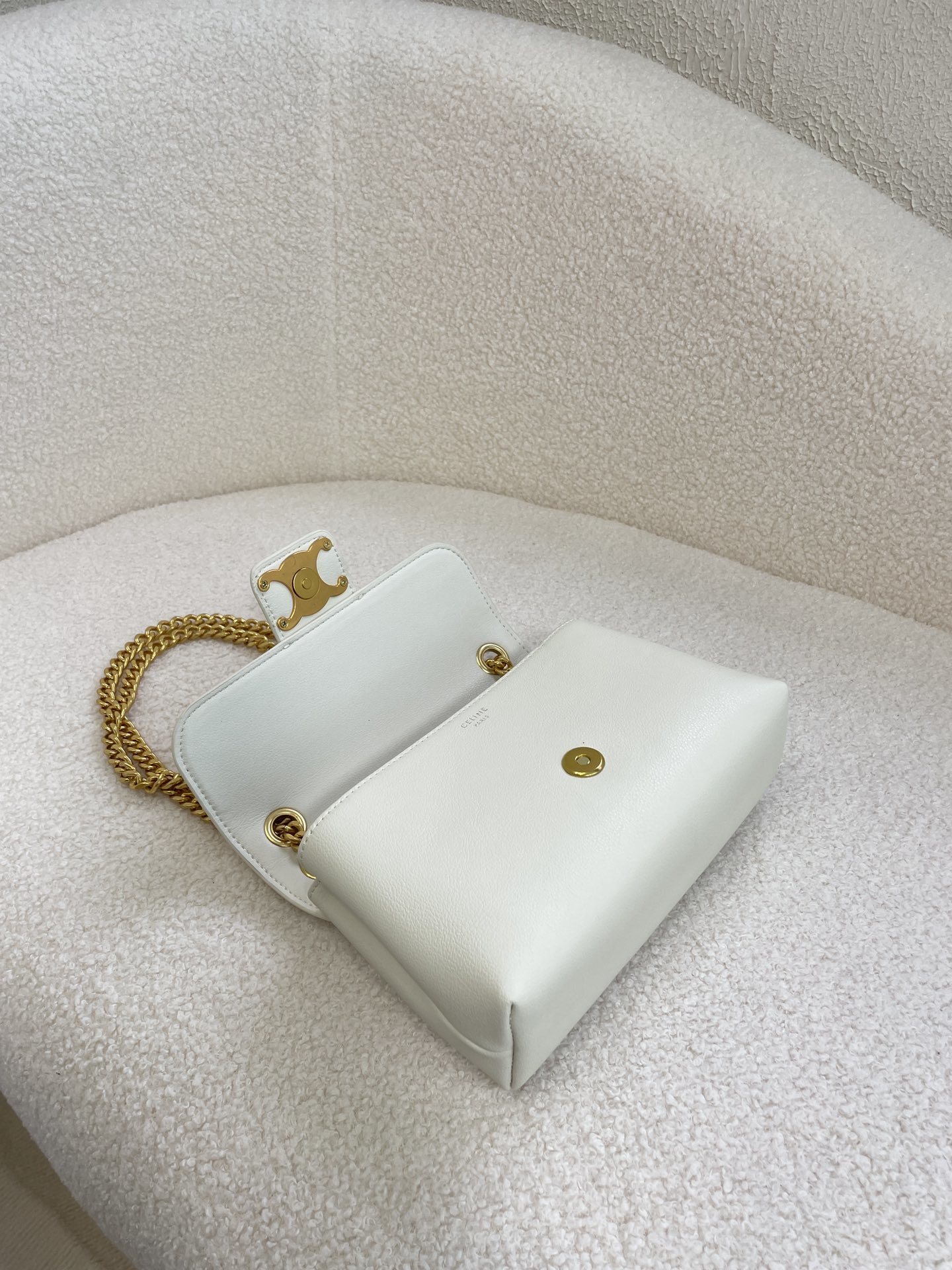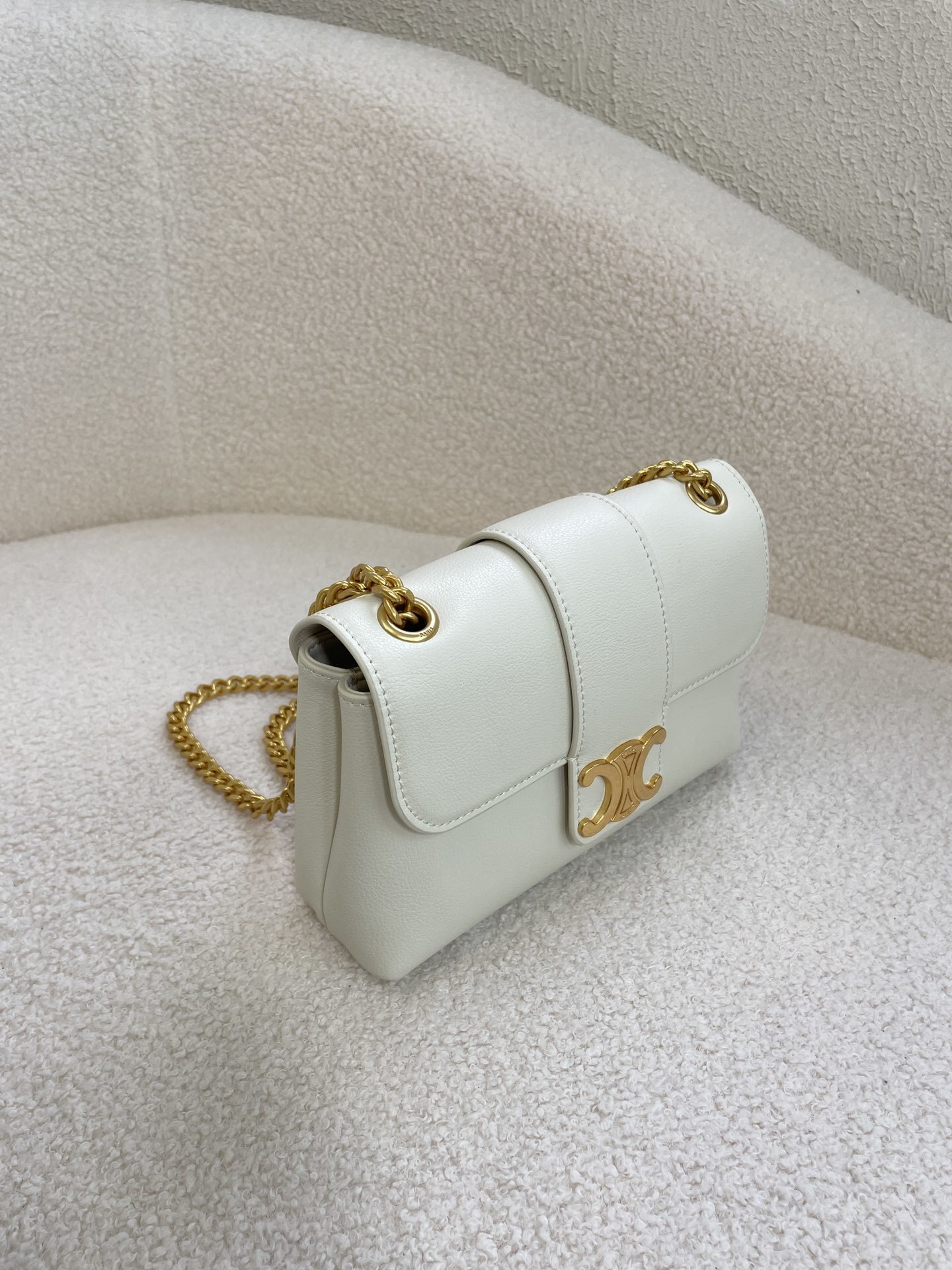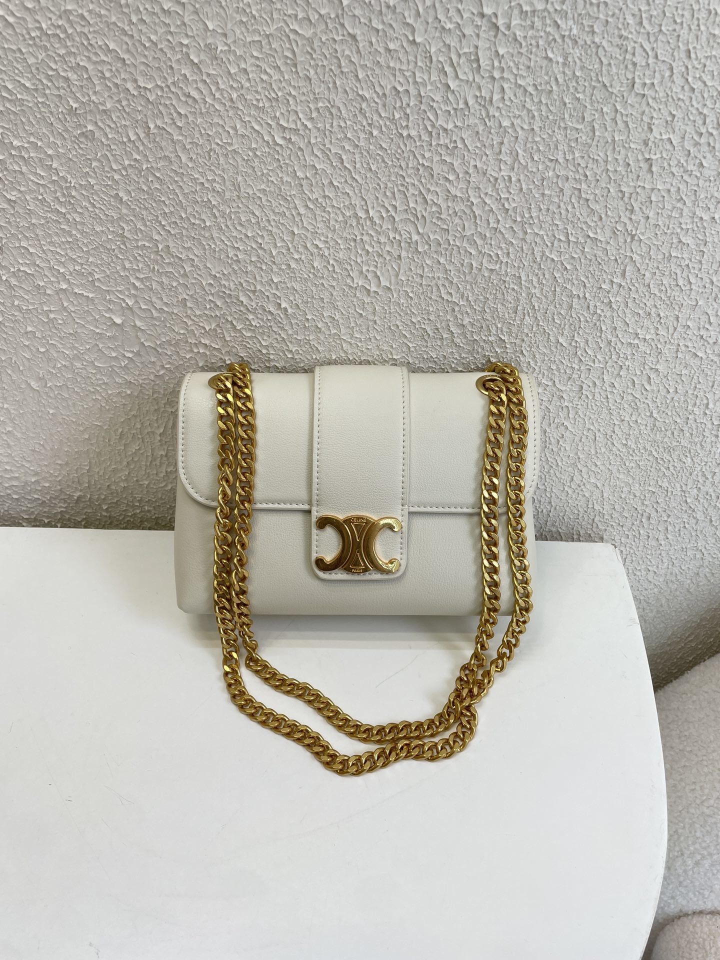 セリーヌ CE TEEN VICTOIRE ハンドバッグ|2024新作「勝利」ライン|金属TRIOMPHEロック×チェーンショルダー|23.5×14×8cm|大容量・軽量・高級感粒面|Promax/化粧品対応