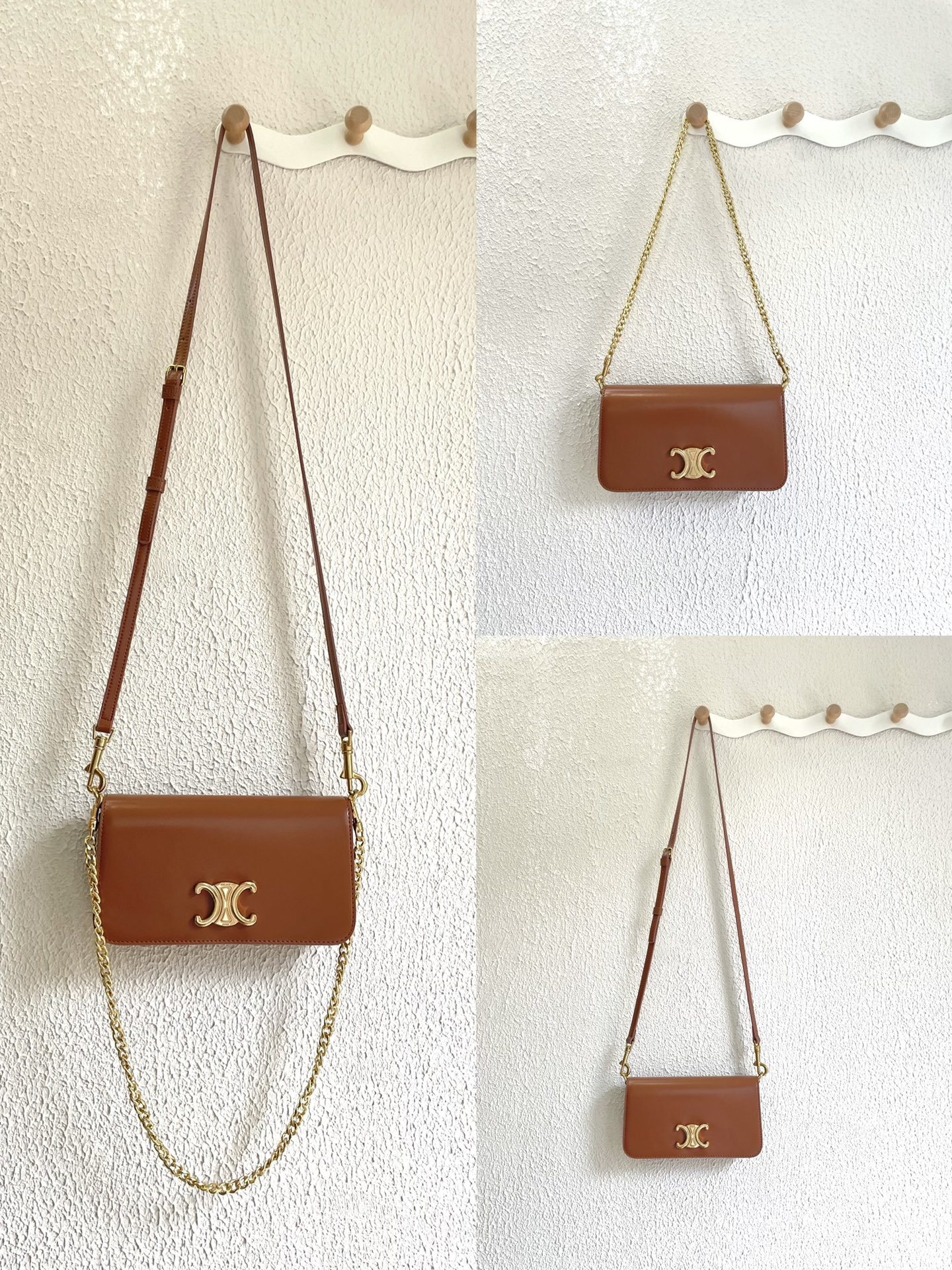 セリーヌ TRIOMPHE CANVAS Eプリント ハンドバッグ|8100|PLUSサイズ大屏スマホ対応|織物×牛皮革裏地|手提/肩背/斜挎3WAY|TRIOMPHE装飾ロック×スナップ開閉|20.5×11×4cm|取り外し可能チェーン/調節肩带付き