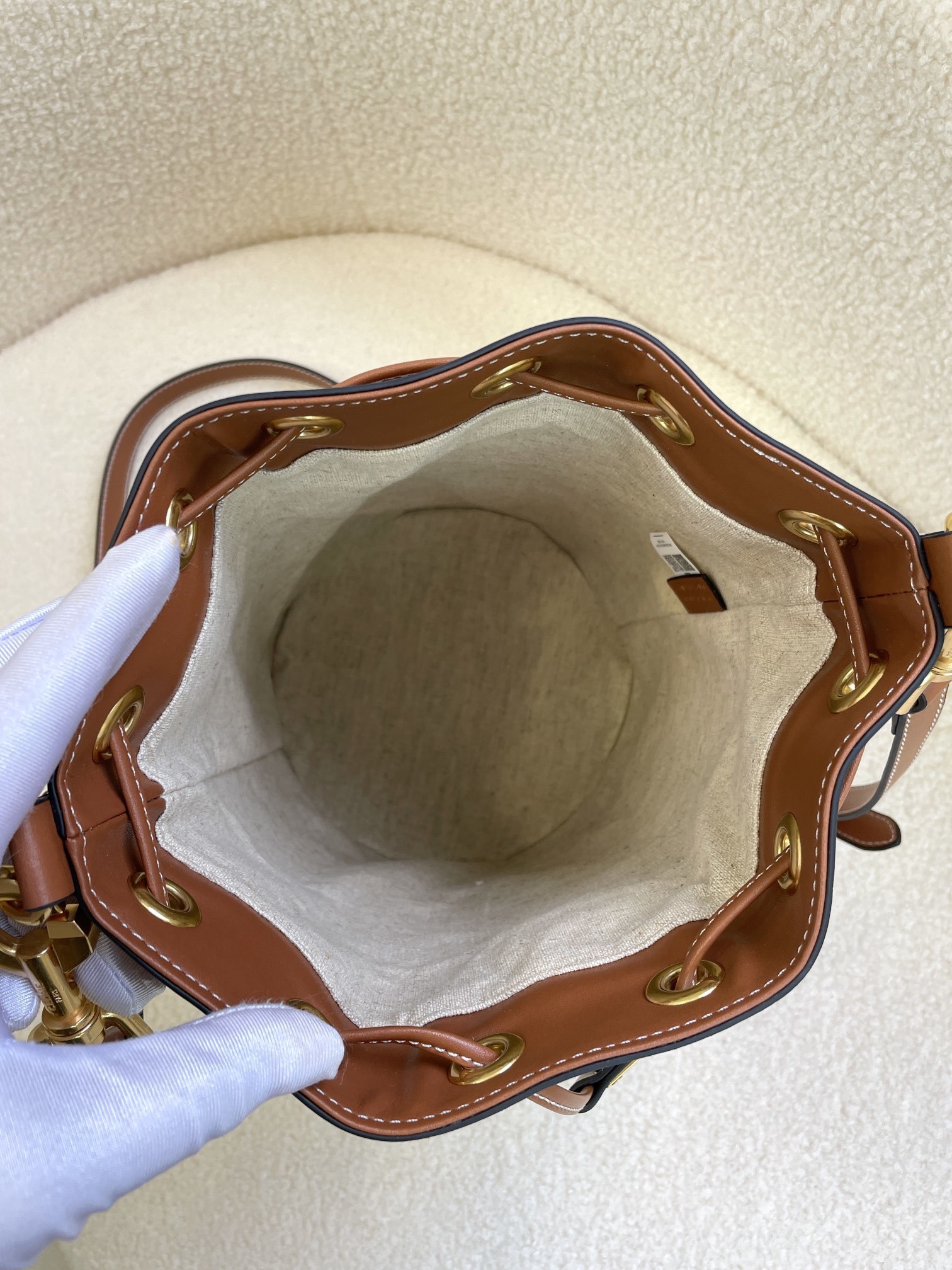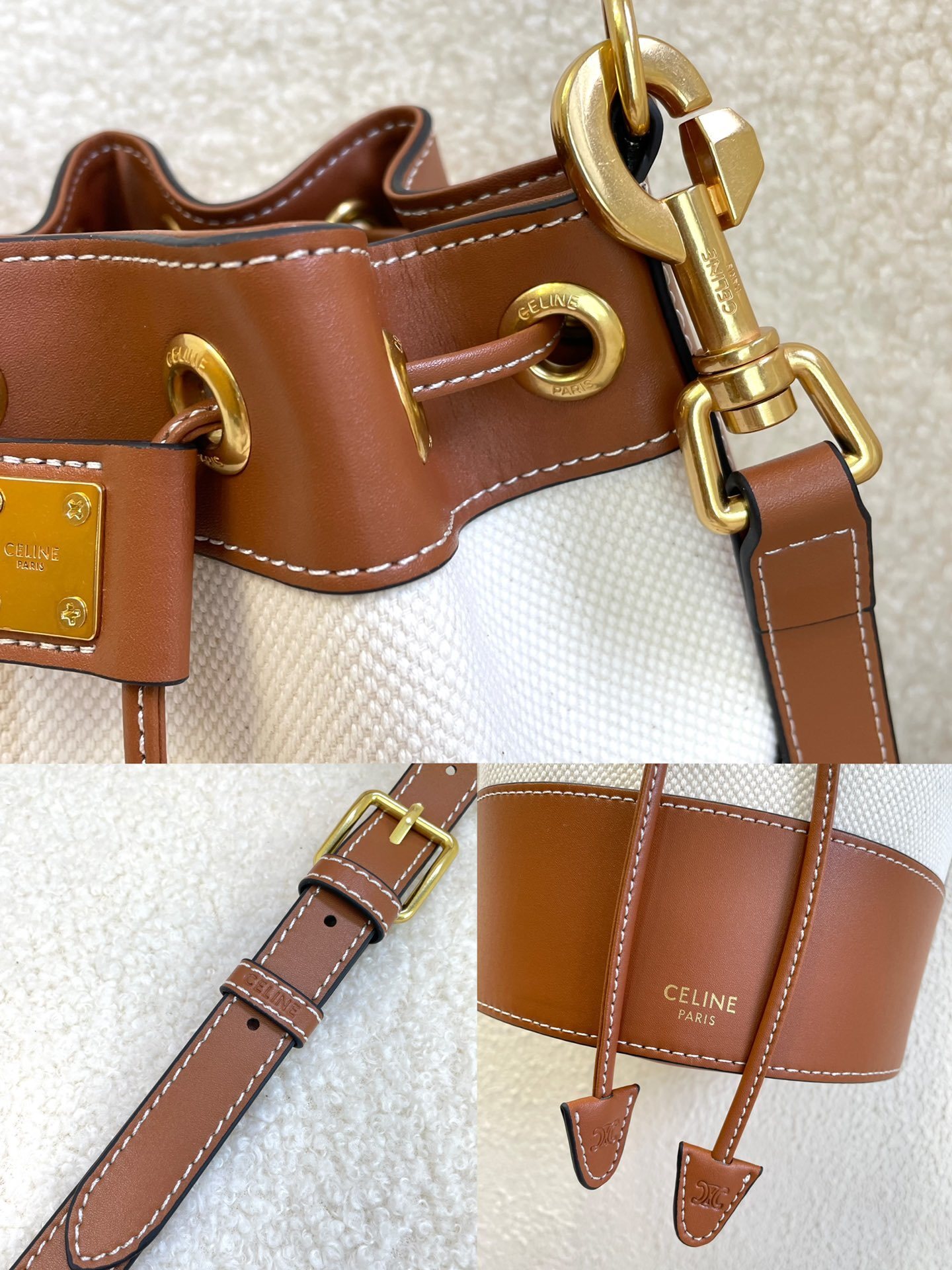 セリーヌ(CELINE)23早秋新作 バケットバッグ,は「水桶包愛好家のための福音」として登場。麻布(ヘンプ)生地×牛革パイピングの質感対比、抽绳皮革缩口の自在な開閉、調節可能な長肩带の2WAY背法を融合し、「軽量で手入れが簡単」「日常通勤に最適」な実用美学を体現します。19.5cm×18.5cm×26cmの縦長バケットシルエットに、「驚きの大容量」と「早秋の涼やかな風合い」を詰め込み、「持つたびに『これなら何でも入る!』という安堵感」と「セリーヌの静寂なデザイン哲学」を融合します。「容量超大」「材料巨轻便 很好打理」と称される所以は、「麻布の天然の軽さ」「牛革の耐久性」「シンプル構造による手入れの容易さ」を三位一体で追求した点にあります。今季「通勤から週末散策まで、荷物を安心して預ける憧れの相棒」として君臨します。