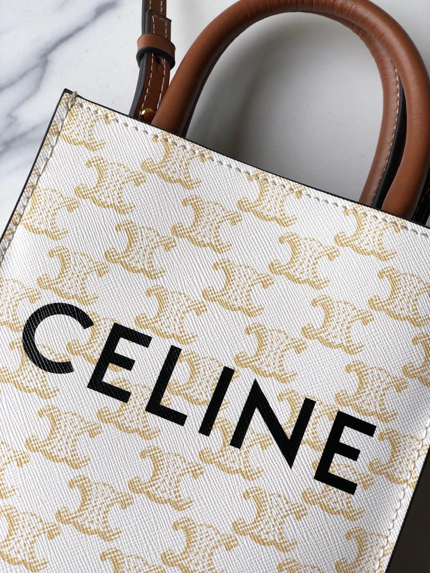 セリーヌ 印花 CABAS TRIOMPHE テキスタイル スモール 縦型ハンドバッグ|65%テキスタイル+35%小牛革|100%コットン裏地|調節・取り外し可能肩带(50cm)|20×17×6cm|内側ポケット付き・軽量実用