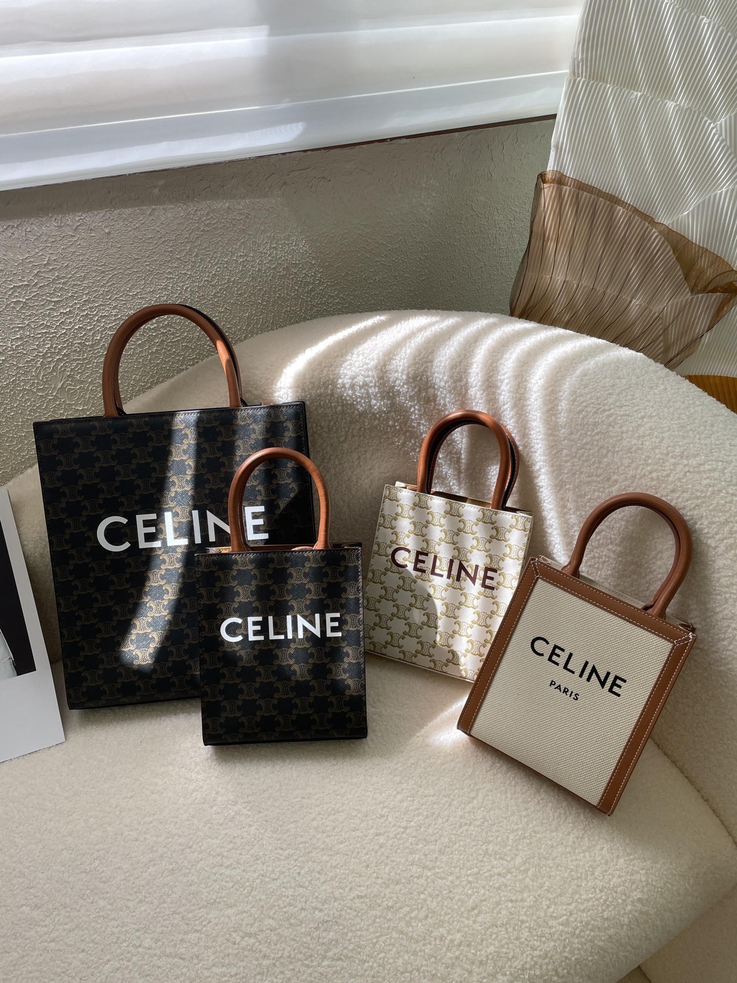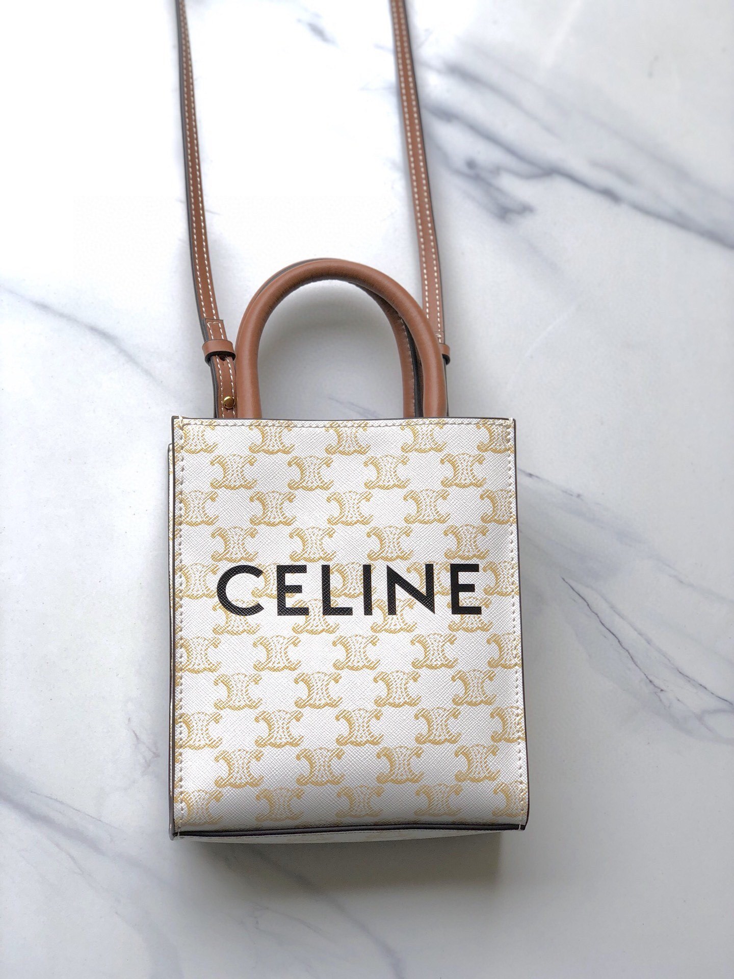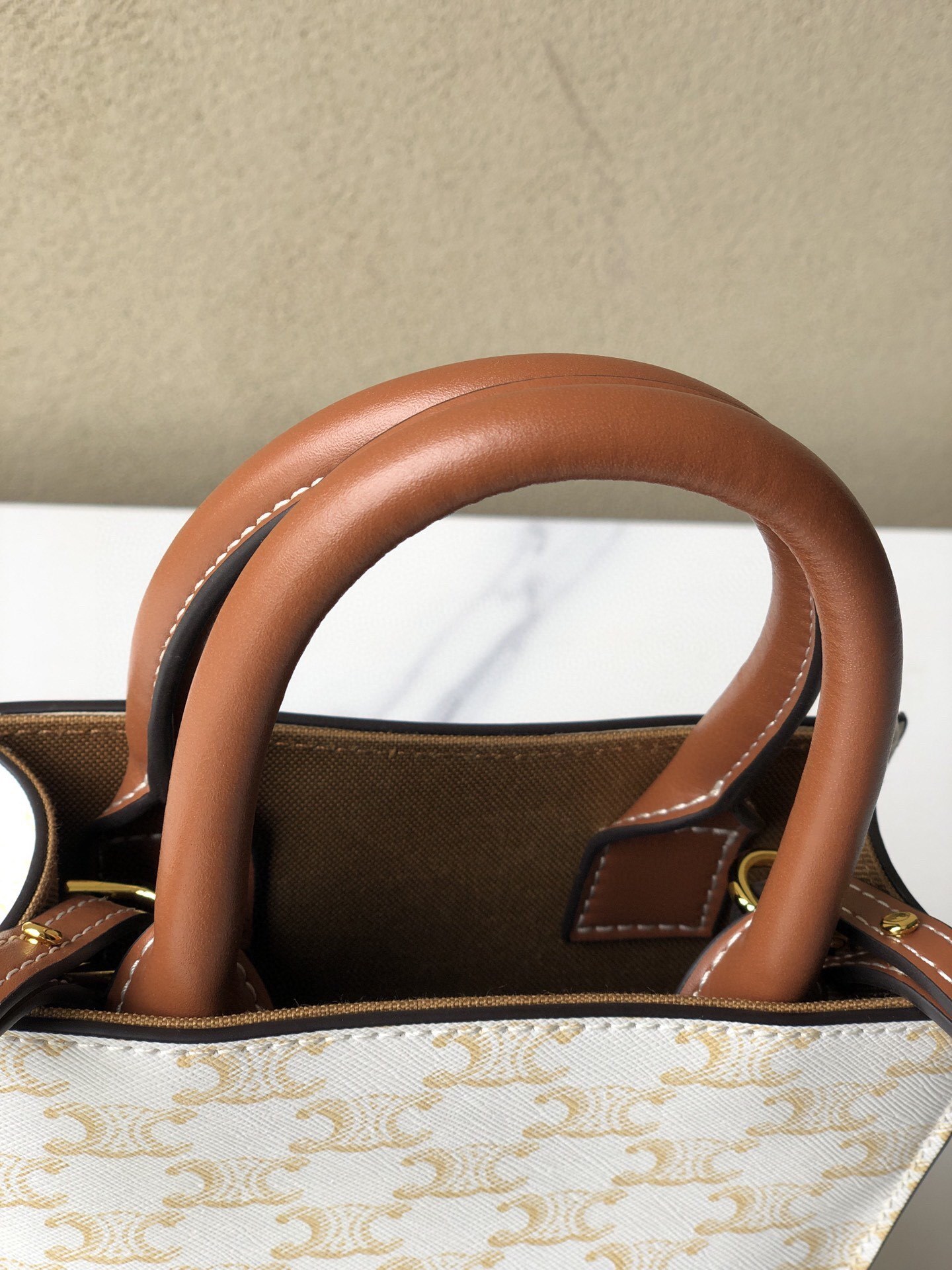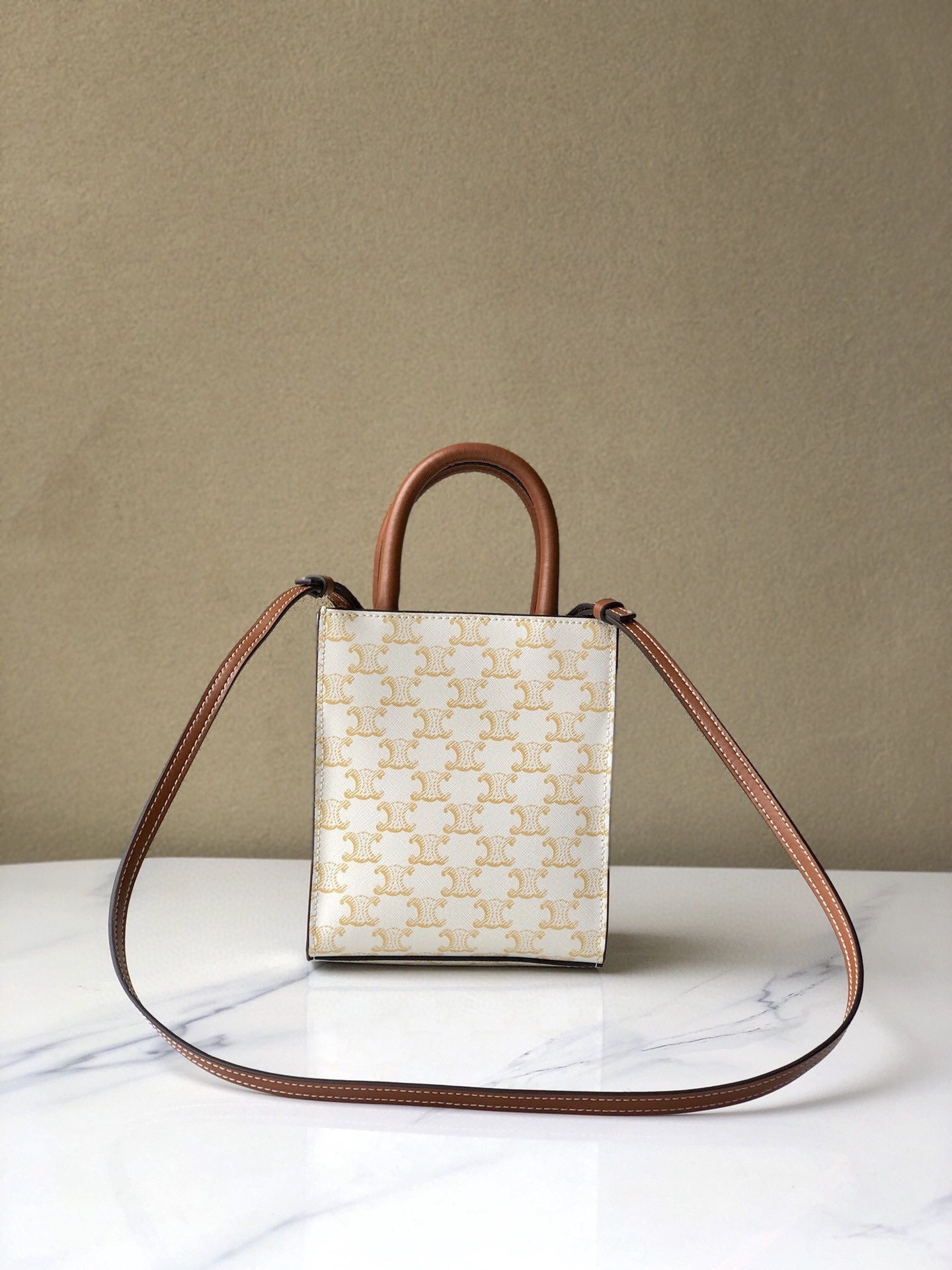 ・TRIOMPHE印花の象徴性:テキスタイル生地全面に施されたセリーヌ伝統のTRIOMPHE印花(凱旋門モチーフの繰り返し)が「一目で識別できるブランドアイデンティティ」を確立。印花の「鮮明な発色」が「遠くからでも存在感」を放ち、「クラシックでありながら新鮮な空気感」を演出(「印花CABAS TRIOMPHE」の所以)。