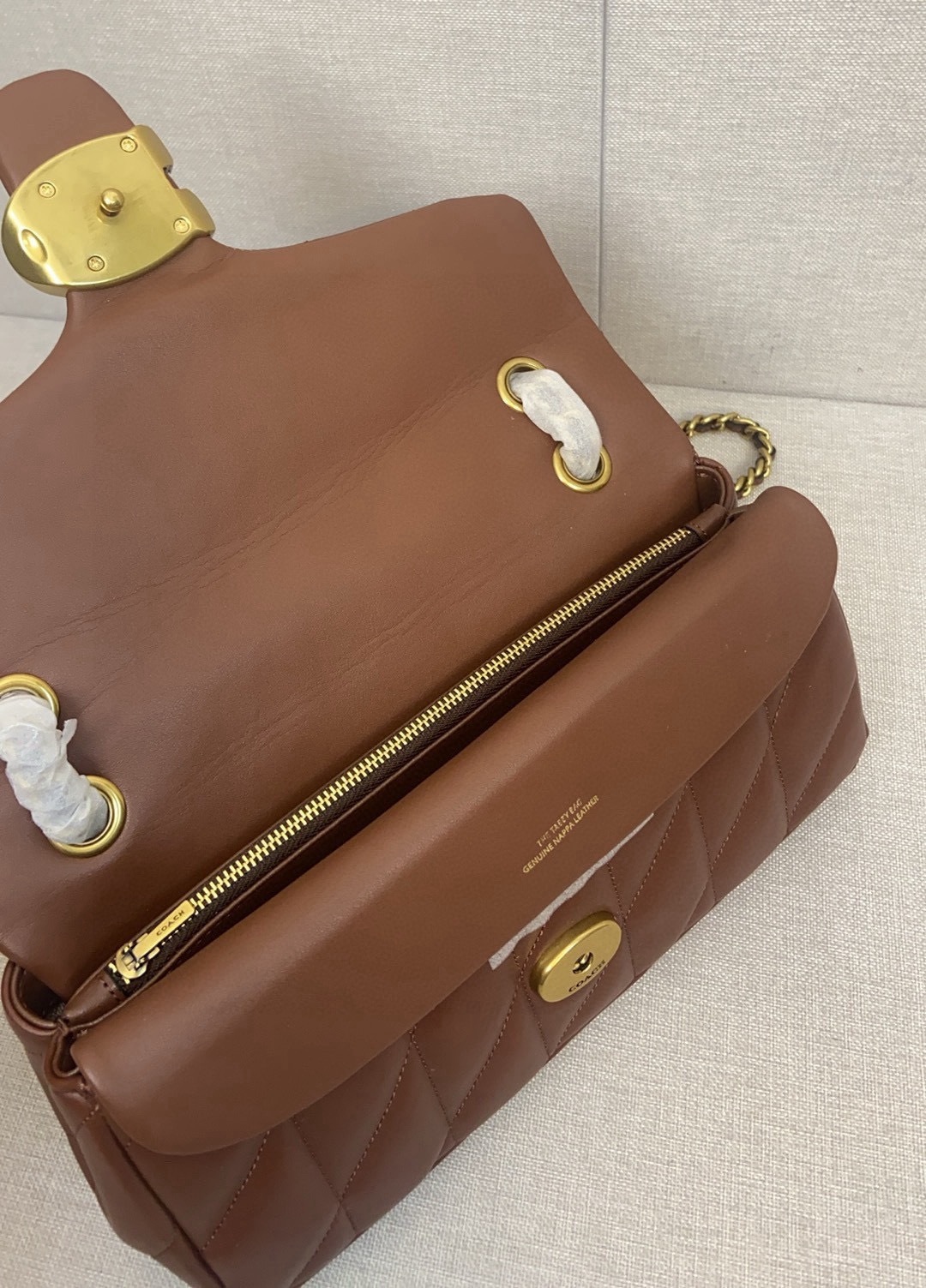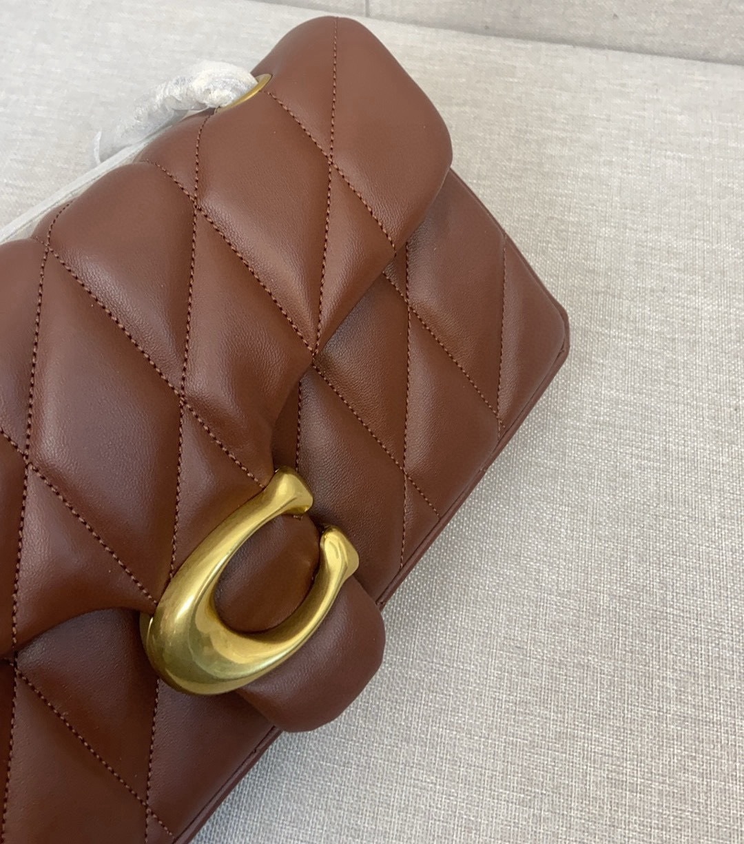 コーチ(COACH)2月新作 CP200/CP197 Quilting Tabby チェーンショルダー,は「Tabbyシリーズのクラシックな佇まいに、現代的な珩缝(キルティング)工芸と『暗黑釦/シルバー釦』の双選択デザインを融合した新作」です。幅26cm×高さ15cmのシックなシルエットに、「菱形キルティングステッチの立体感」と「ダークトーン(クール)またはシルバートーン(低調高級)の釦」を配し、「持つたびに『自分らしいクール&エレガント』を感じる喜び」を届けます。「酷酷的暗黑扣,低调又高级的银色扣」「选一个你喜欢的尺寸和颜色吧」と称される所以は、「派手な装飾を排し、キルティングの幾何学美しさと釦の質感選択だけで『個性を表現する自由』を与える点」にこそあります。今季「通勤から夜会まで、TPOを選ばない憧れの2月新作相棒」として君臨します。