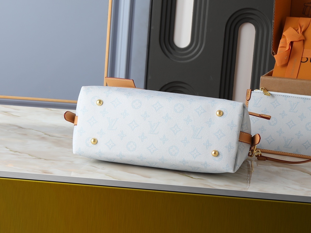 ルイ・ヴィトン(Louis Vuitton)Carryall スモールハンドバッグ,は「モノグラム(Monogram)パターン誕生130周年を記念し、クラシックCarryallシリーズに『レトロブルー調の新たな息吹』を吹き込んだ限定デザイン」です。29cm×24cm×12cmの堂々としたシルエットに、「モノグラム オリジン ブルー クーリエ(Monogram Origine Bleu Courrier)の限定パターン」「滑らかな牛革トリムの上質感」「記念シリーズアドレスプレートの特別感」「タブレット端末も収納可能な大容量」を配し、「持つたびに『LVの130年歴史と現代の祝祭感』を感じる体験」を届けます。