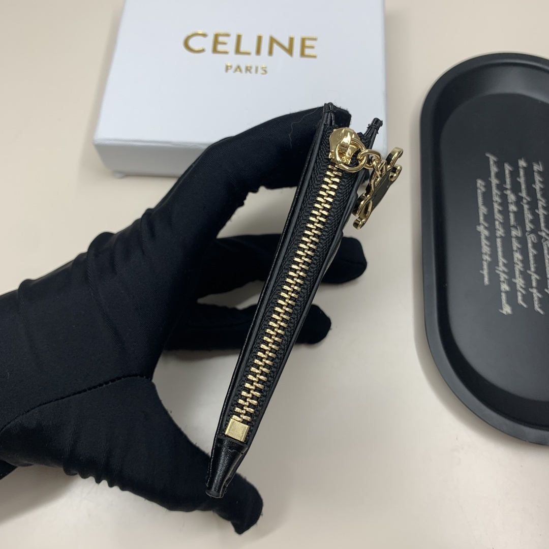 CELINE 新作 光沢小牛皮 ジッパー開閉 超薄型多機能カードケース| 全3色展開(黒・茶・アプリコット)