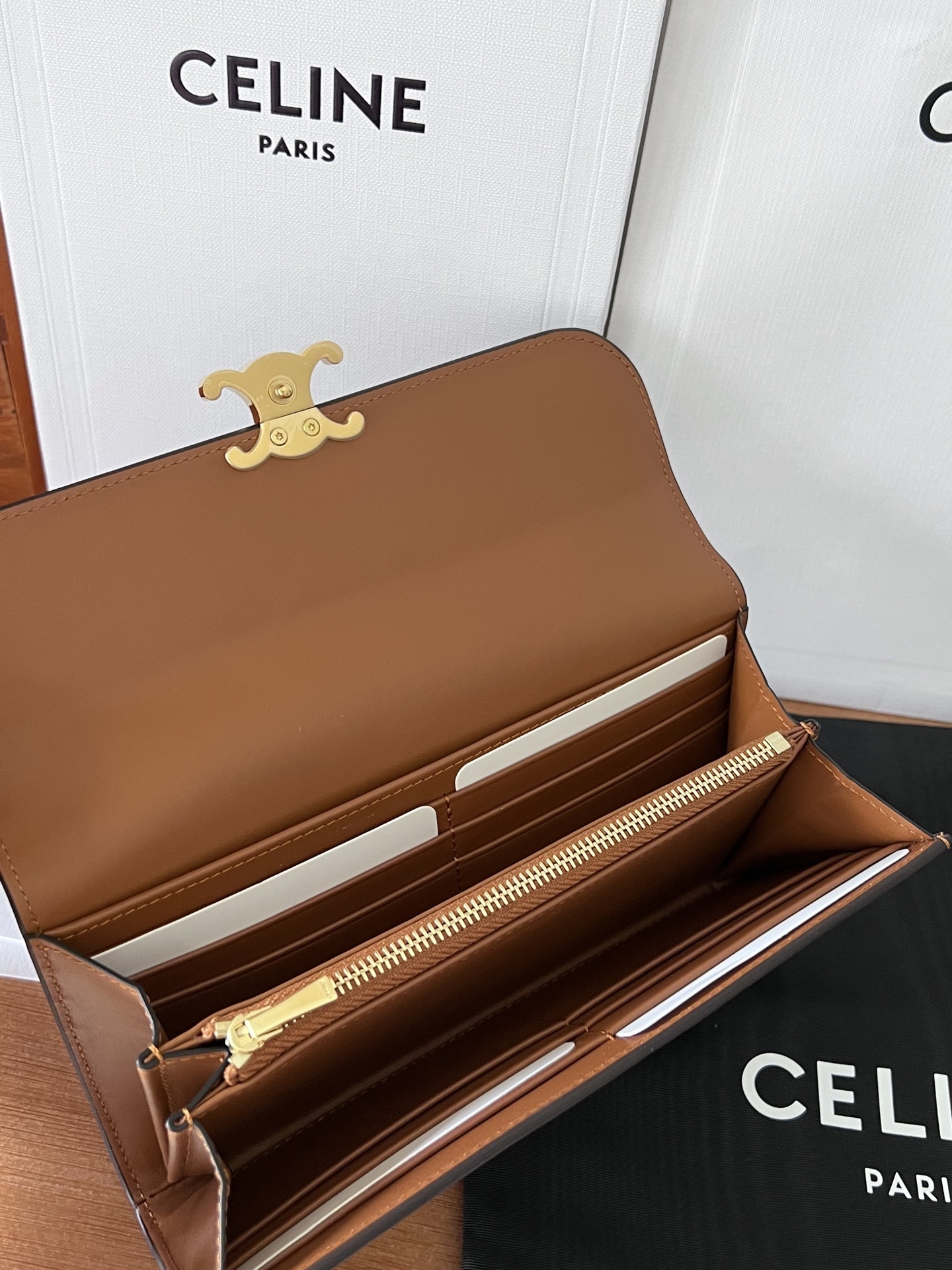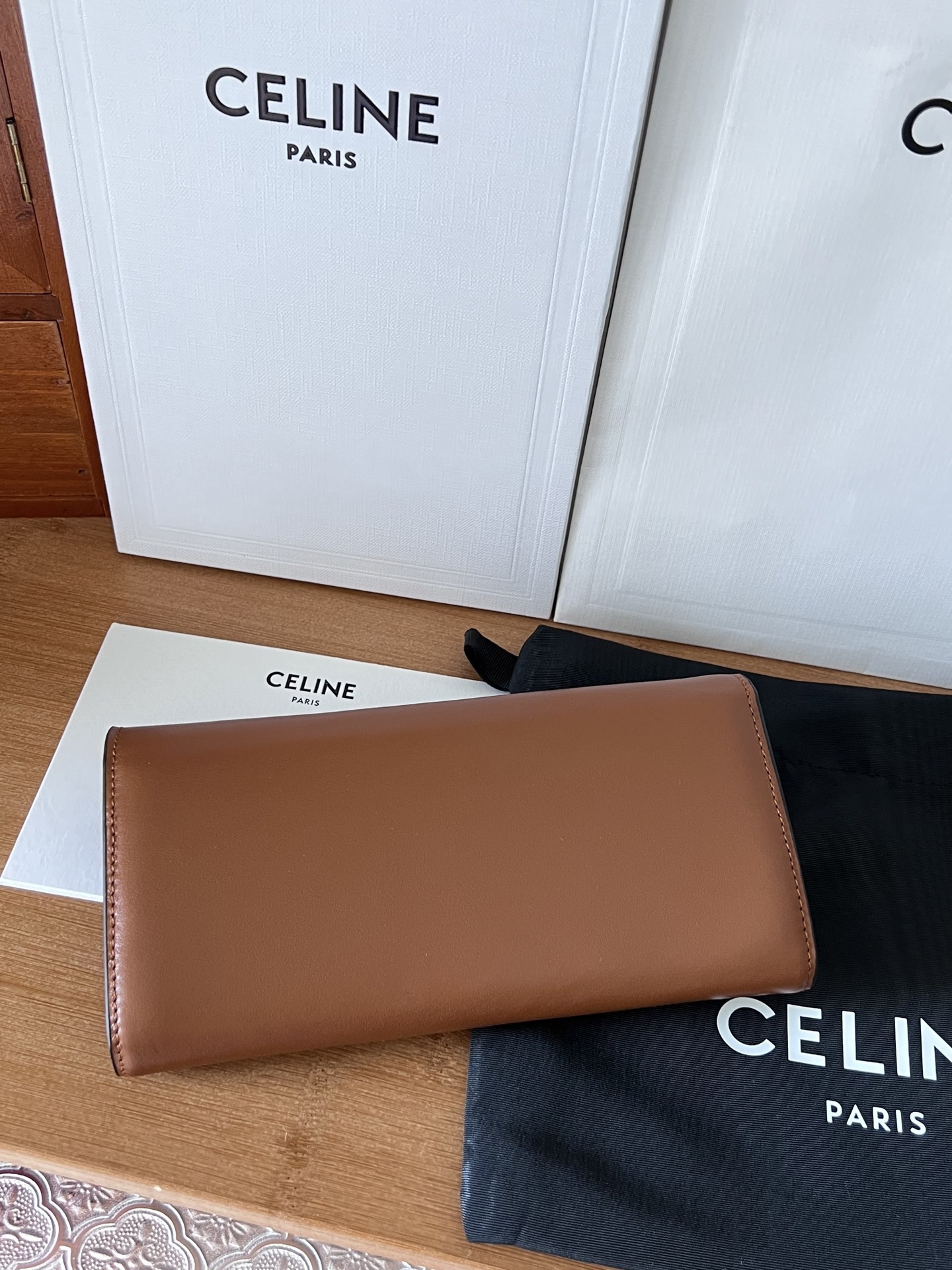 CELINE TRIOMPHE ラージウォレット|品番10E313 牛革製 ゴールドメタル×TRIOMPHEスナップ留め 12カードスロット&多機能収納