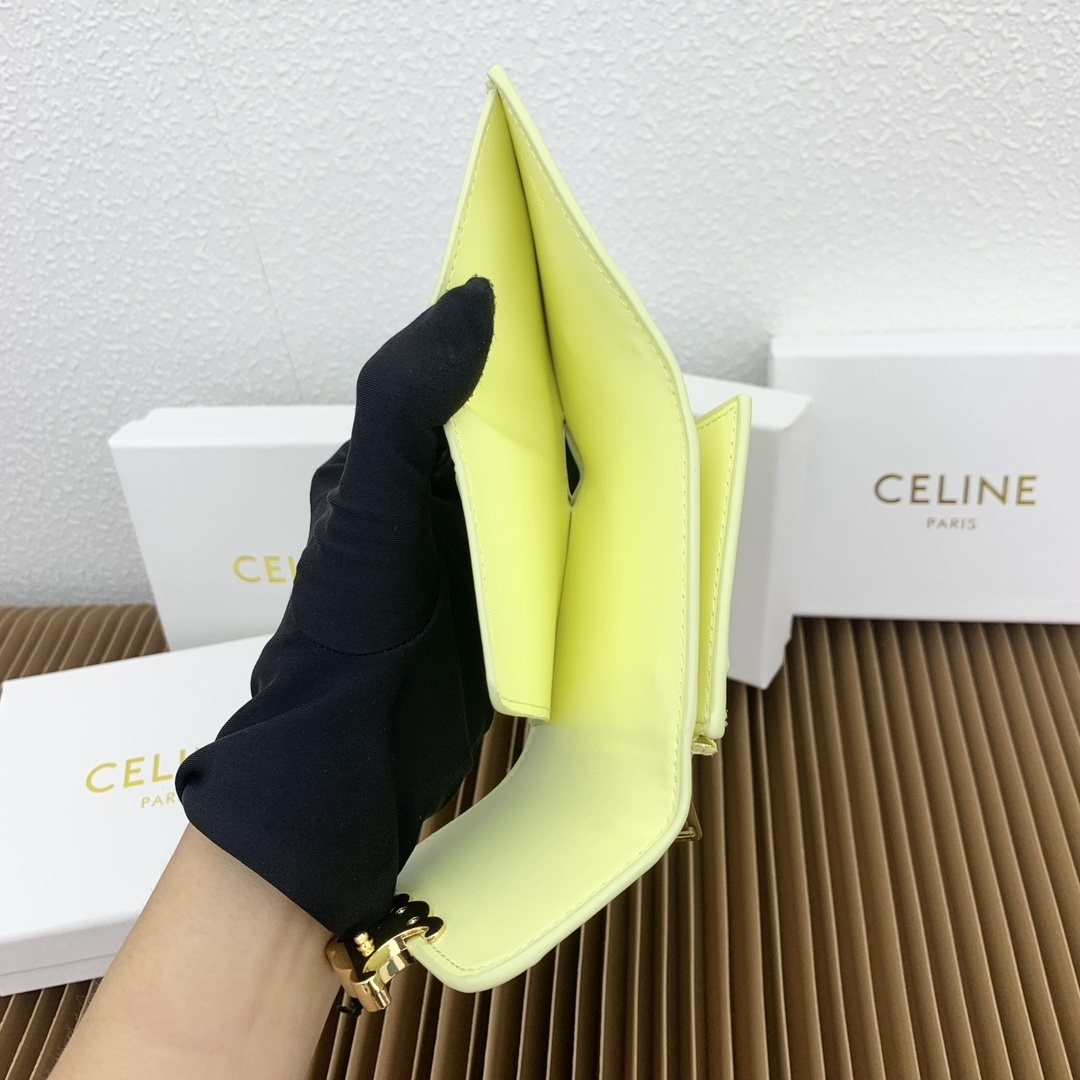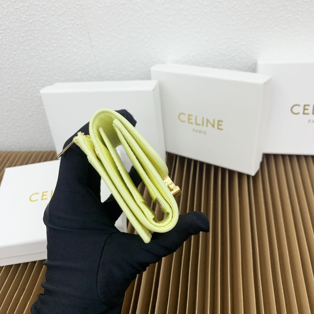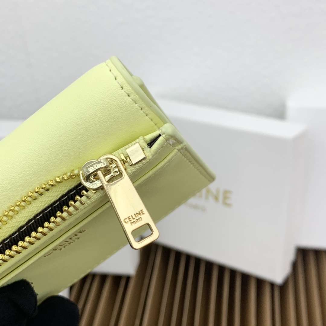 CELINE 光沢小牛皮 小型ウォレット|コインポーチ付き トライアンフメタルスタッド留め 4カードスロット&可拆除ジッパーカードケース(9.5×7.5×3cm)