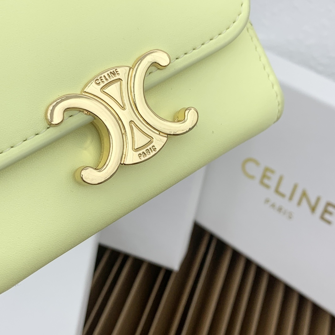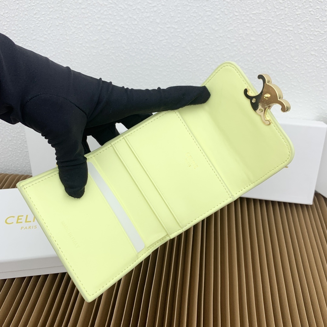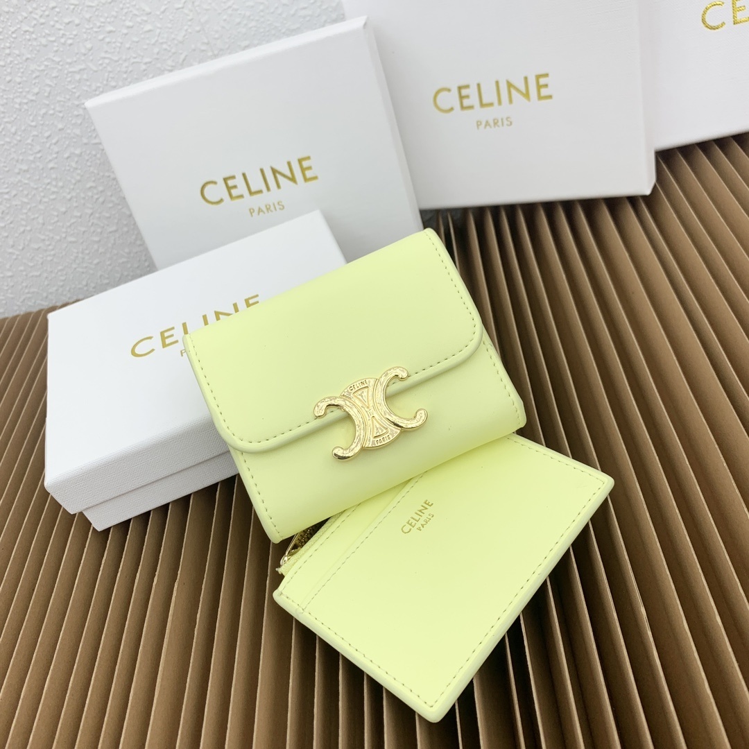 CELINE 光沢小牛皮 小型ウォレット|コインポーチ付き トライアンフメタルスタッド留め 4カードスロット&可拆除ジッパーカードケース(9.5×7.5×3cm)