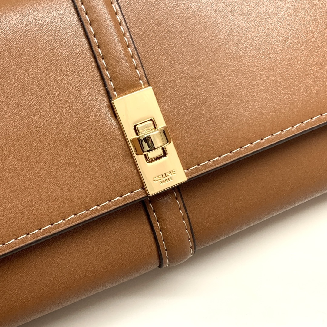 CELINE ショートウォレット|頭層牛革製 全3色展開(黒・アプリコット・茶)19×10×3cm 精巧で洗練されたデザイン