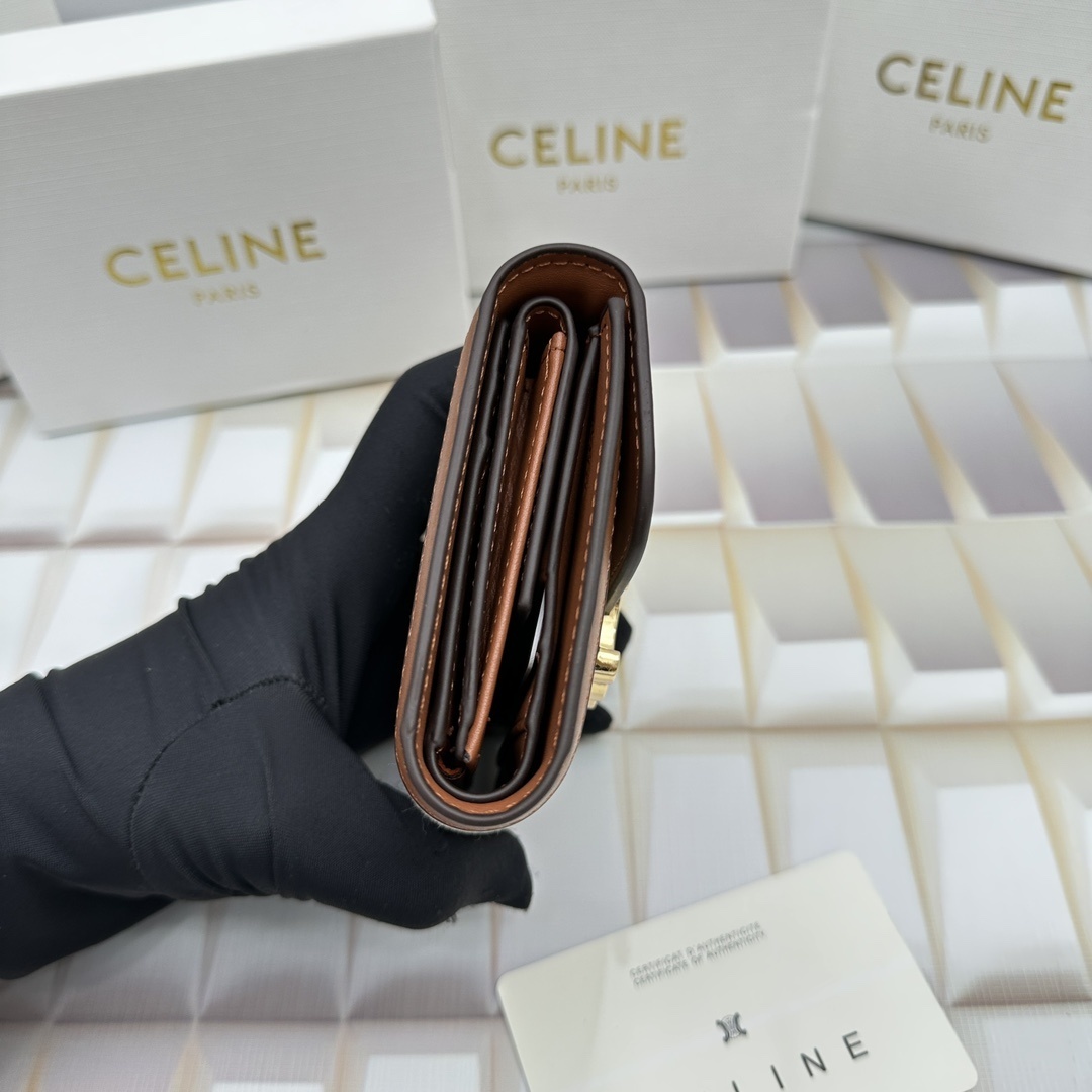 CELINE トリオンフ ミニ ファブリック&カーフウォレットは、ベージュとホワイトのファブリック素材とカーフスキンのパイピングが織りなす上質な風合い、トリオンフモチーフのゴールドメタルが放つエレガンス、そしてコンパクトボディに詰まった実用的な収納力を兼ね備えた逸品です。日常のあらゆるシーンで、スマートかつ洗練された印象を与えます。長く愛用できる、財布選びの新定番となることでしょう。