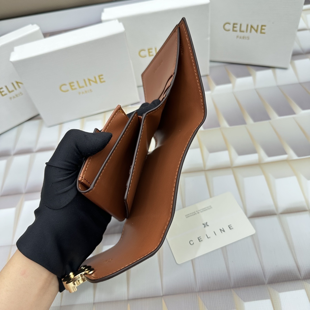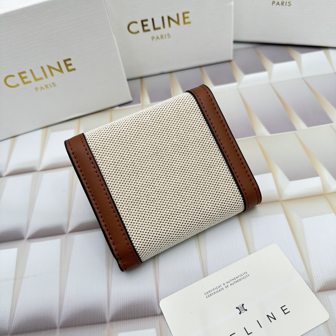 CELINE トリオンフ ミニ ファブリック&カーフウォレット ベージュ/ホワイト