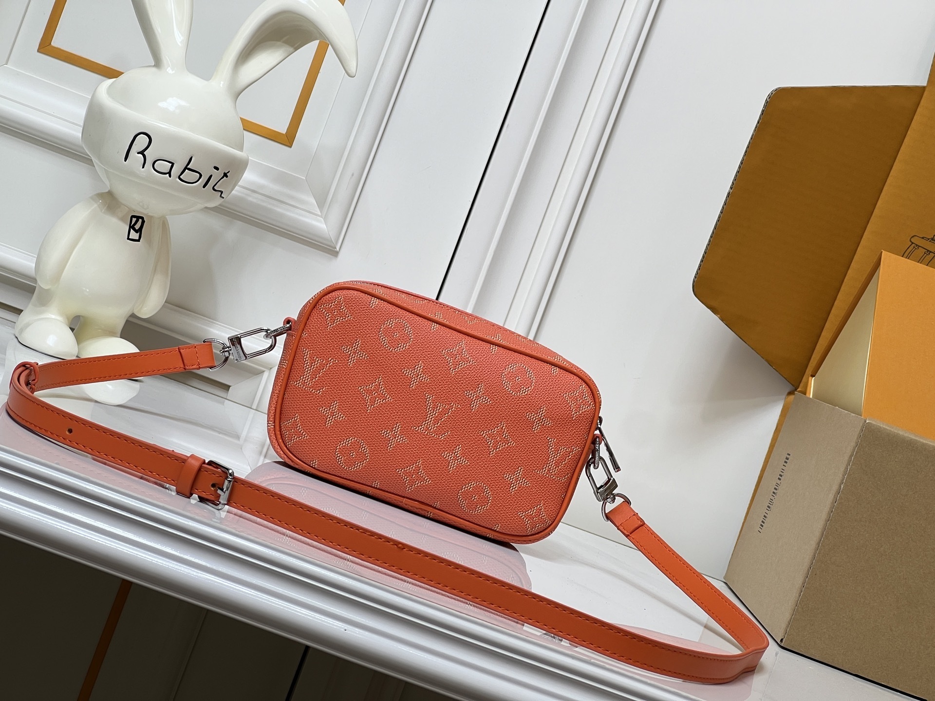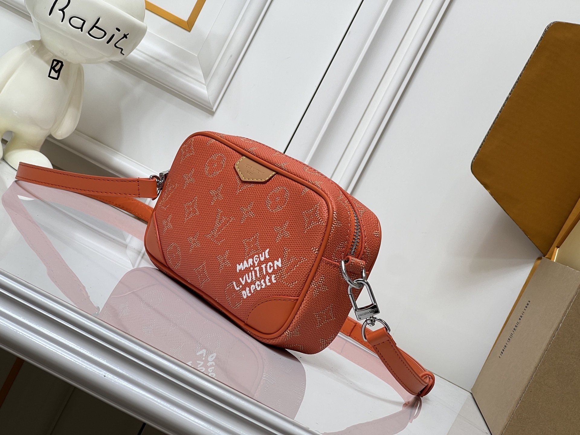 モノグラムキャンバス(防水・防汚加工済み)を主体とし、レトロ調牛革でフロントコーナーとバッグ全体の輪郭を強調。革の質感と帆布の軽やかさが絶妙なバランスを生み出します。
