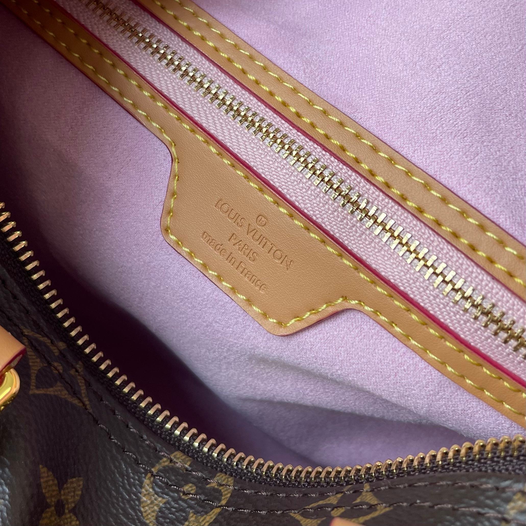 内側には羊皮革ライナーとLVロゴ入りのファスナー付きポケットを配置。小物類を安全に収納可能です。
