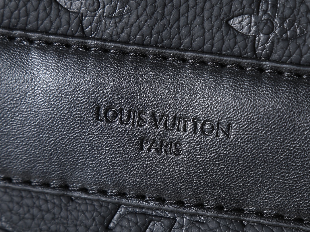 光沢黒レザートリムで輪郭を強調し、伝統的なLVモノグラムと現代的なシンプルさを調和させます。