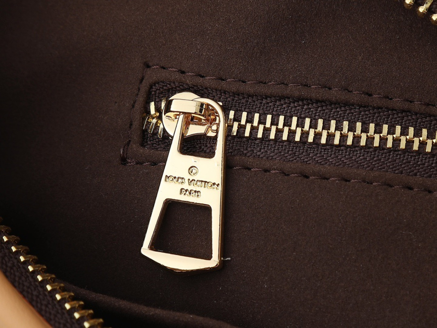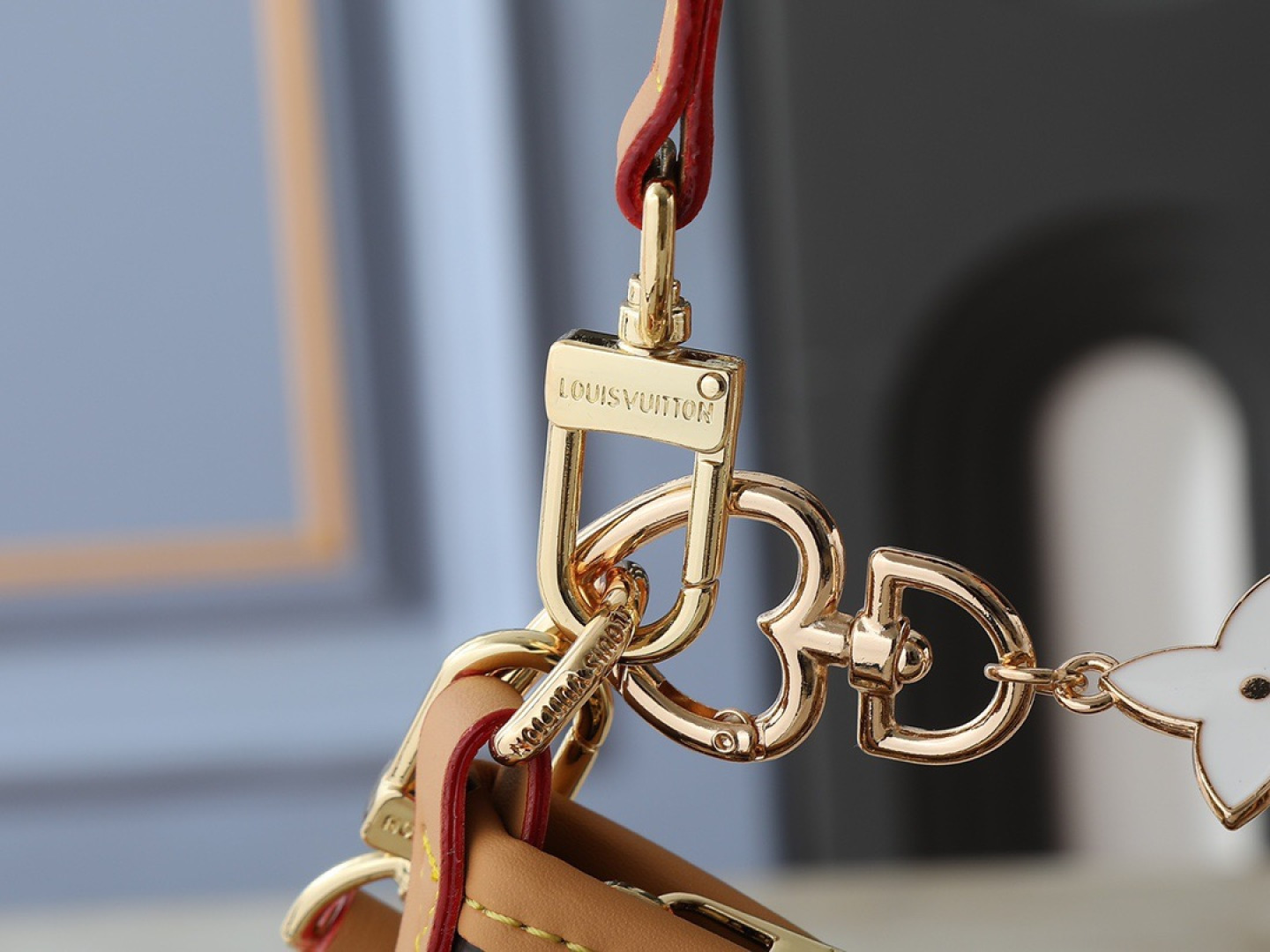 ルイ・ヴィトンロゴ刻印:ストラップ接続部分にはブランドロゴの刻印が施され、高級感を強調。