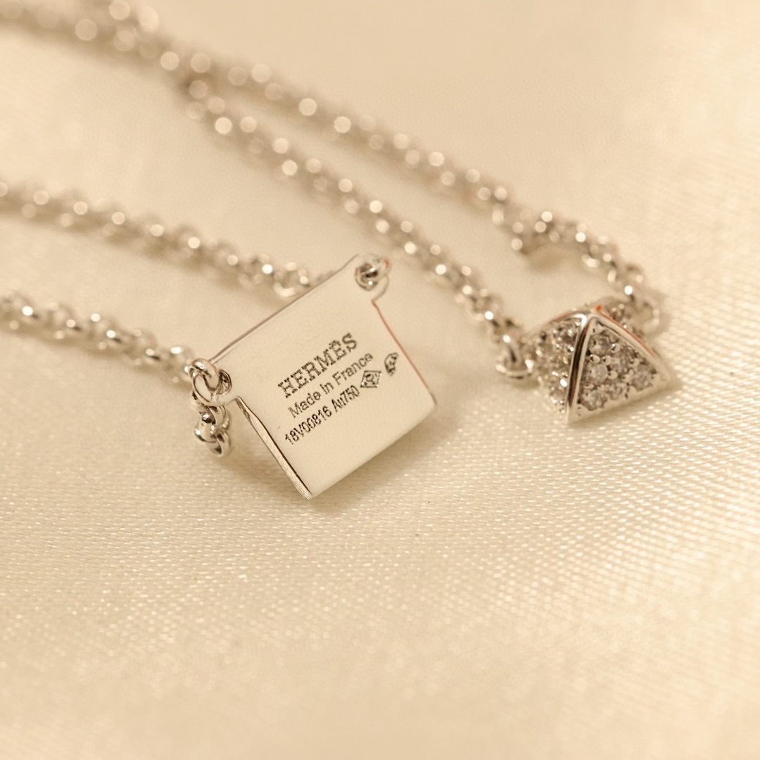 エルメス スタッズ フルダイヤ ネックレス 18Kホワイトゴールド ロゴ入り OTクラスプ