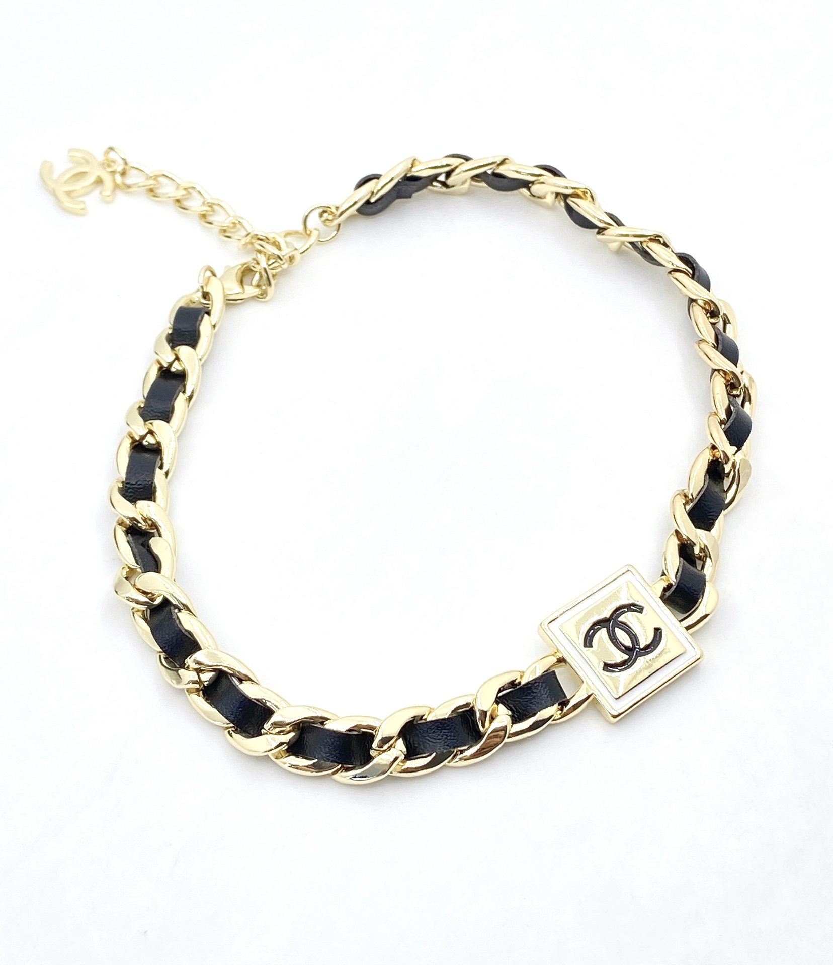 シャネルの新作・定番モデルとして人気の高い、ブラックレザーのブレスレットです。