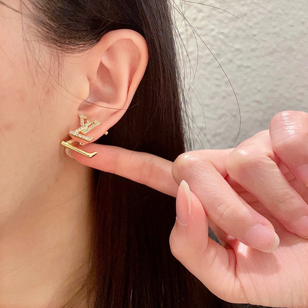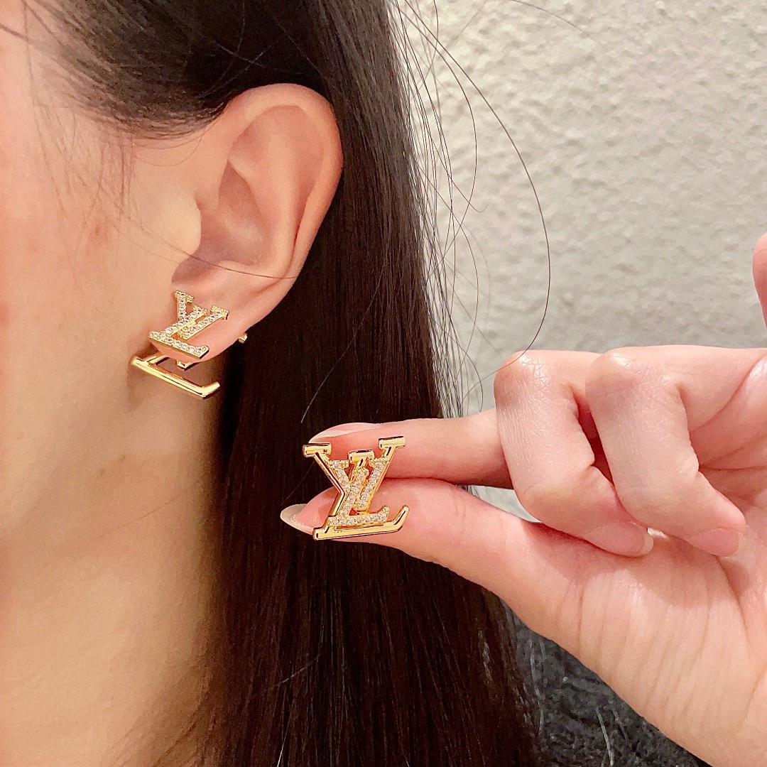 【LOUIS VUITTON】ルイ・ヴィトン ピアス ゴールド アルファベット ブリリアントカット シンプル 上品 レディース