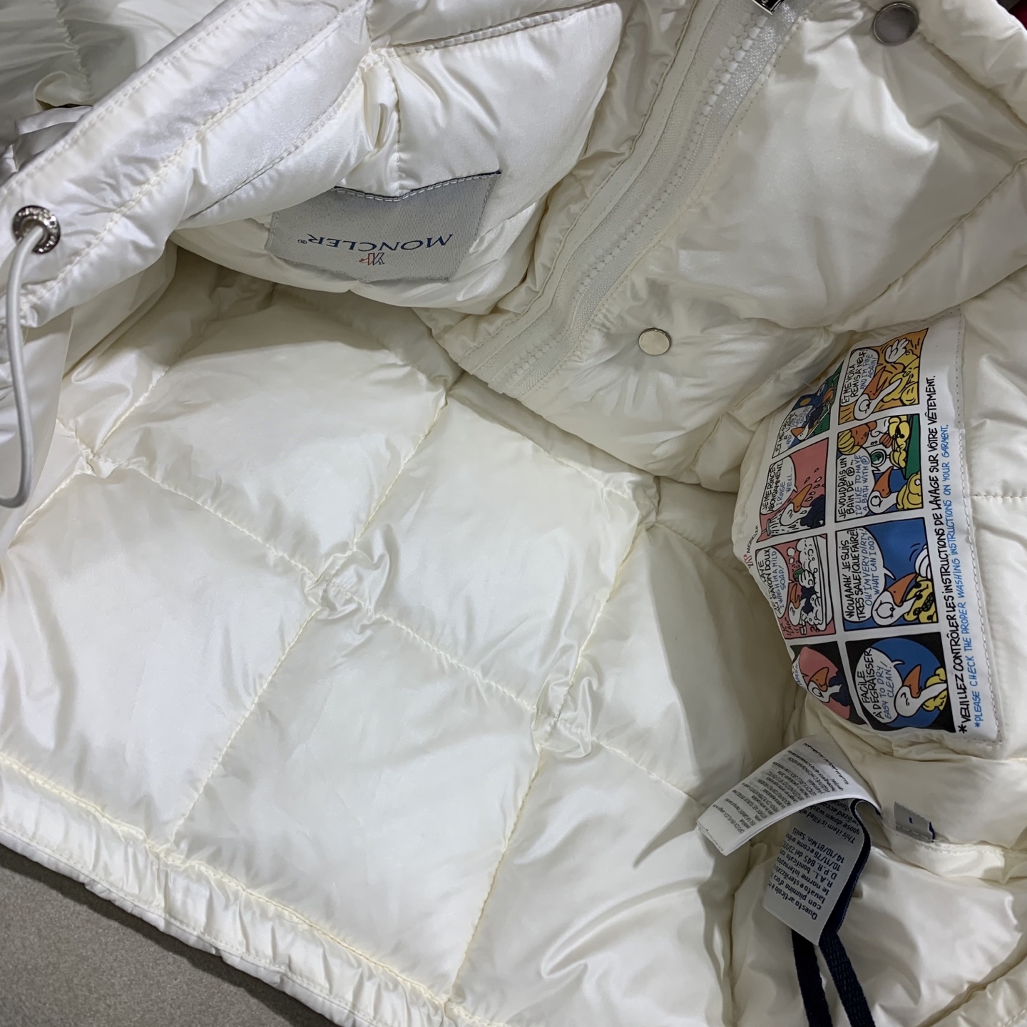90%白ダウン充填:高密度に詰め込まれた白鵞毛で、軽量ながらも極寒地対応。充填密度を高め、風抜けを防止