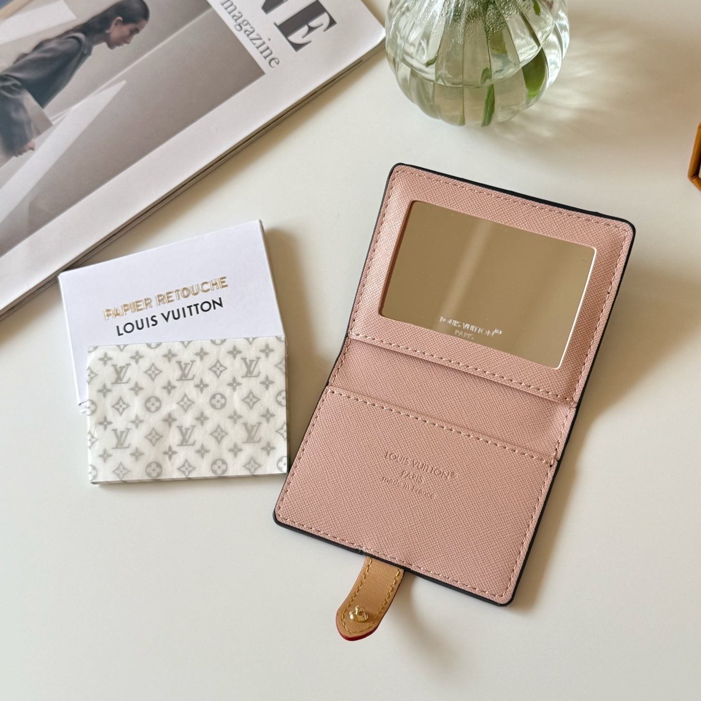 モノグラムの美学と機能性を融合させた高級整粧紙セット。LVの象徴的なモノグラム帆布を採用し、上品なデザインと実用的な収納機能を両立。メイクアップアイテムとしてだけでなく、ライフスタイルアイテムとしても活躍する洗練された存在感