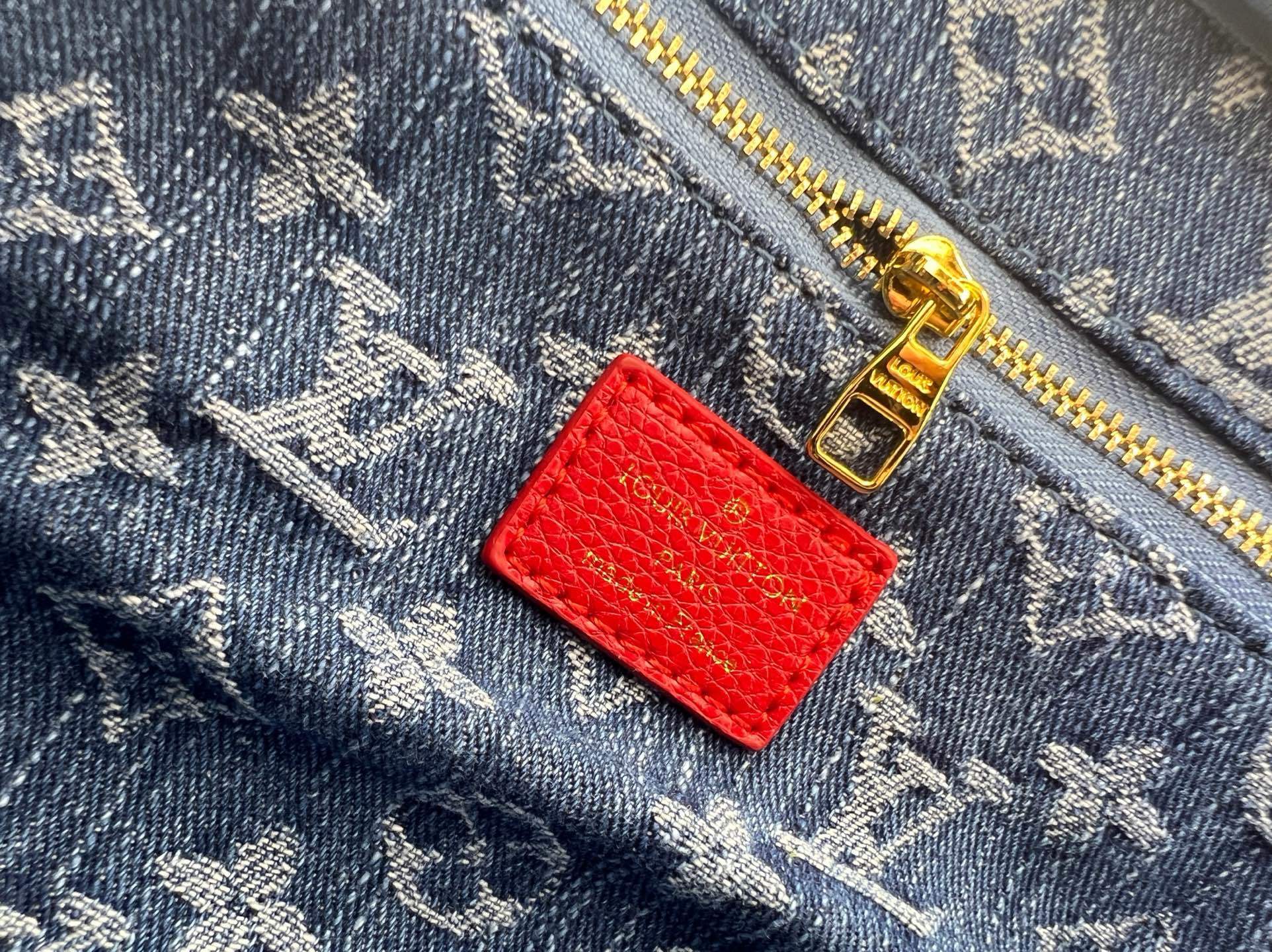 コラボレーションデザイン:村上隆氏監修のデニムチェリー刺繍(胸元に立体感を演出)/ モノグラムエクリプス帆布との絶妙なバランス