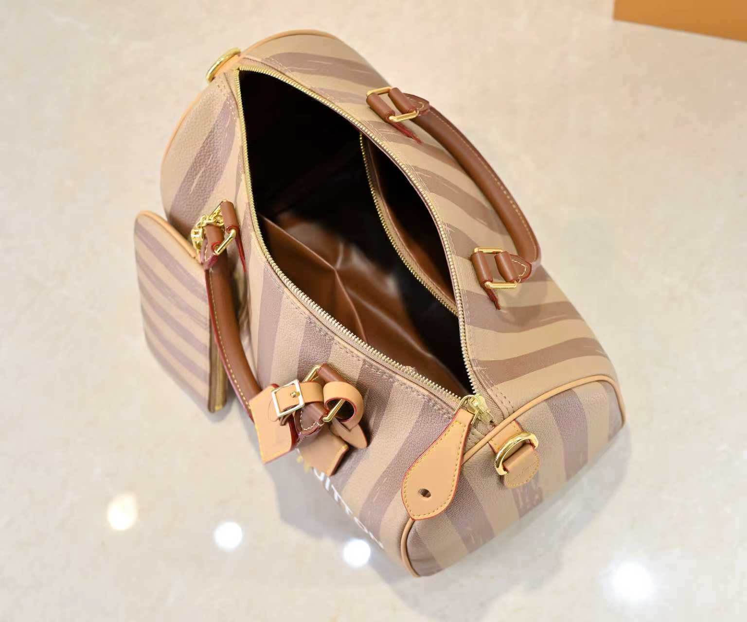 LV スピーディー バンドリエール30 ハンドバッグ (コーヒーストライプ×カーキストライプ コンビネーションデザイン / 全革スピーディー枕型バッグ / モノグラムプリント×羊革内張りの高級感)