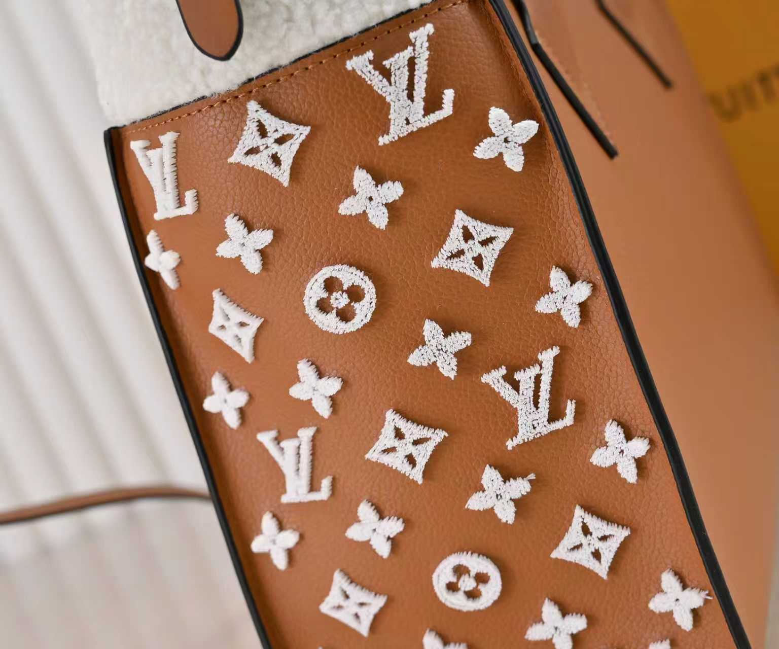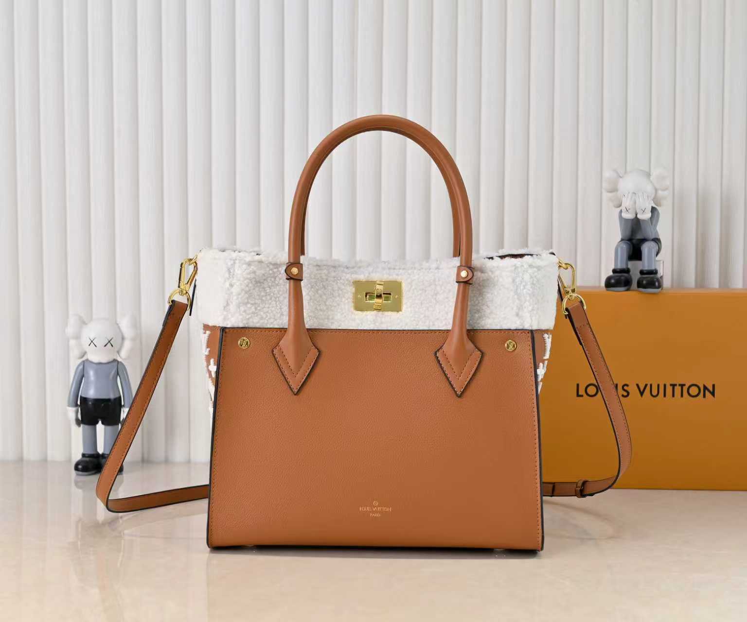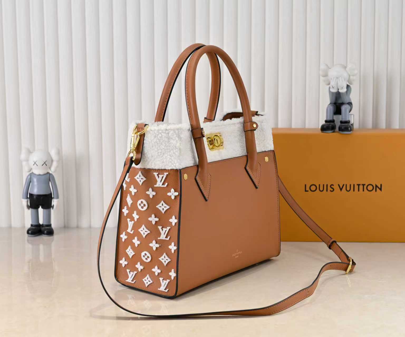 LVの人気シリーズ「オン・マイ・サイド」から登場したミディアムサイズのハンドバッグ。上質な「グラビアカーフスキン(粒面牛皮革)」と柔らかな「ウールレザー」を融合し、「快適な持ち心地」と「クラシックな格調」を両立。「両側に施されたモノグラムフラワーのタッフィング(簇绒)」がアクセントとなり、トップハンドルと取り外し可能なショルダーストラップで「手提ち・肩掛け・斜め掛け」の多様な背携方式を実現。「日常使いから特別な日まで、持つたびに快適さと上品さを実感する、身につける悦びを追求した逸品」として開発されました。