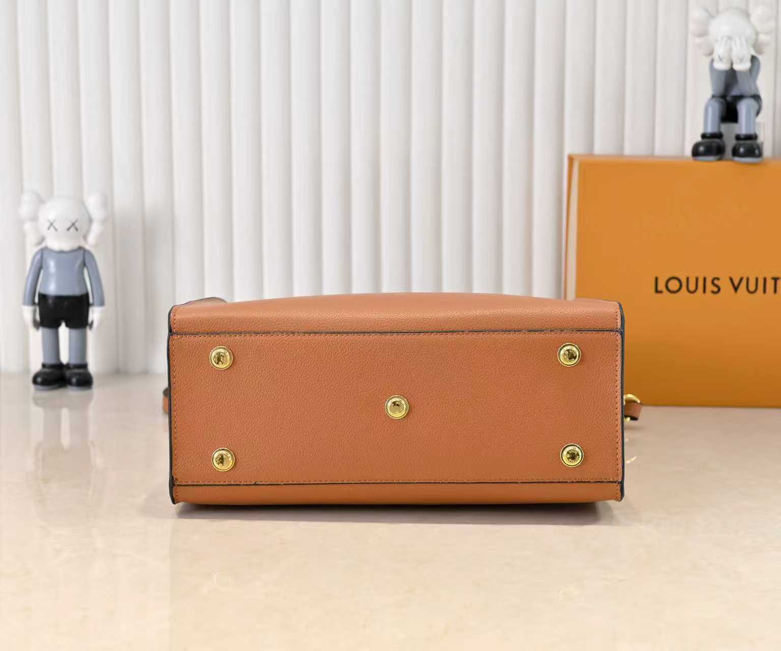 LV オン・マイ・サイド ミディアム ハンドバッグ (グラビアカーフスキン×ウールレザー / 両側モノグラムフラワータッフィング / 多様背携方式対応の快適中号バッグ)