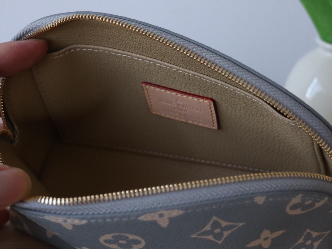 表面には、ルイ・ヴィトンの歴史あるモチーフを現代的にアレンジした「モノグラム・トリアノン」柄のコーティングキャンバスを採用。クラシックなモノグラムの持つ品格と、トリアノン柄ならではの繊細な陰影が調和し、どんなコーディネートにも映えるデザインです。内側には、洗濯可能な柔らかな内張りを配し、汚れが気になった際も手軽にお手入れできる機能性を備えています。