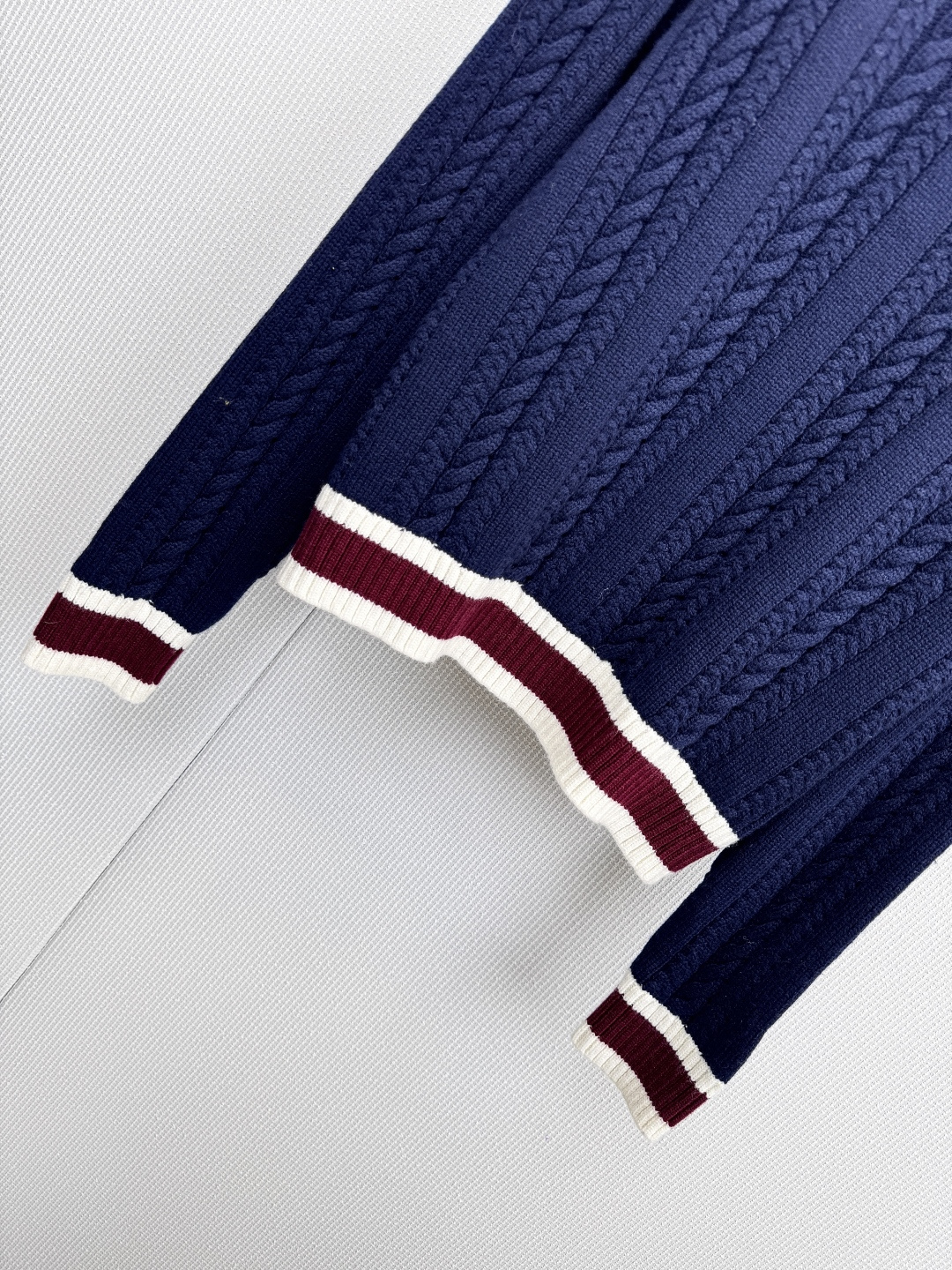 ・ウエストの引き締め:ややゆとりのある身頃が胴回りをカバーしつつ、リブ編みの縁取りがウエストラインを柔らかく強調。「沙漏型ボディ」を自然に演出