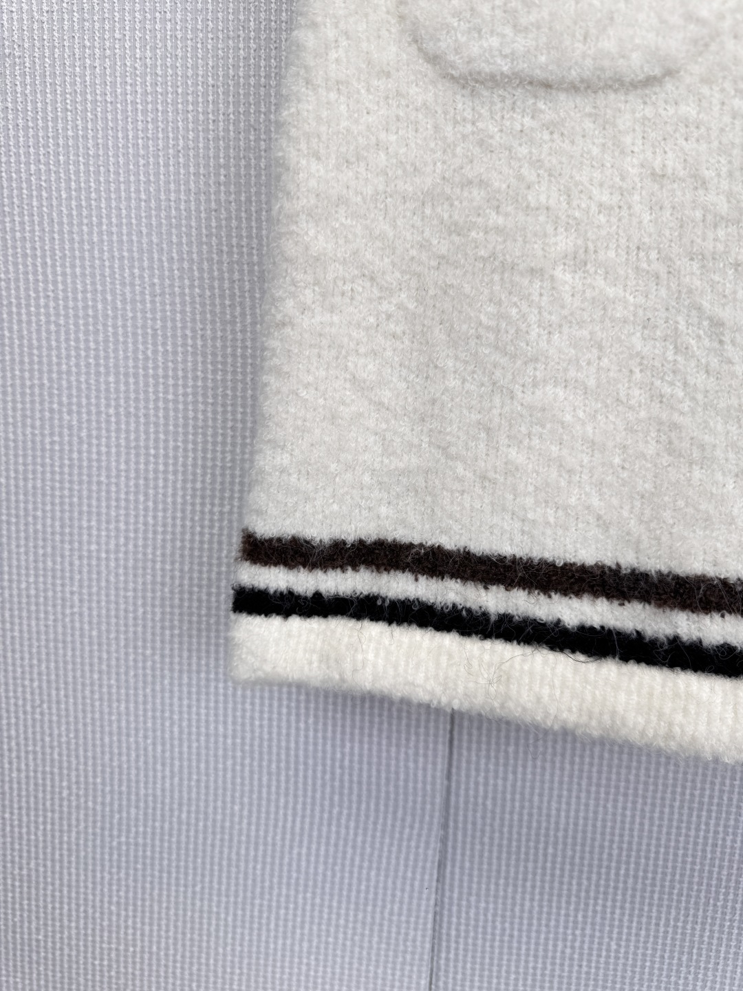 ・保管のコツ:ブランド公式のニット専用ハンガーに掛け、防虫剤(シートタイプ)を置き、湿気を避けて保管。銀色ボタンは柔らかい布で定期的に拭き取る