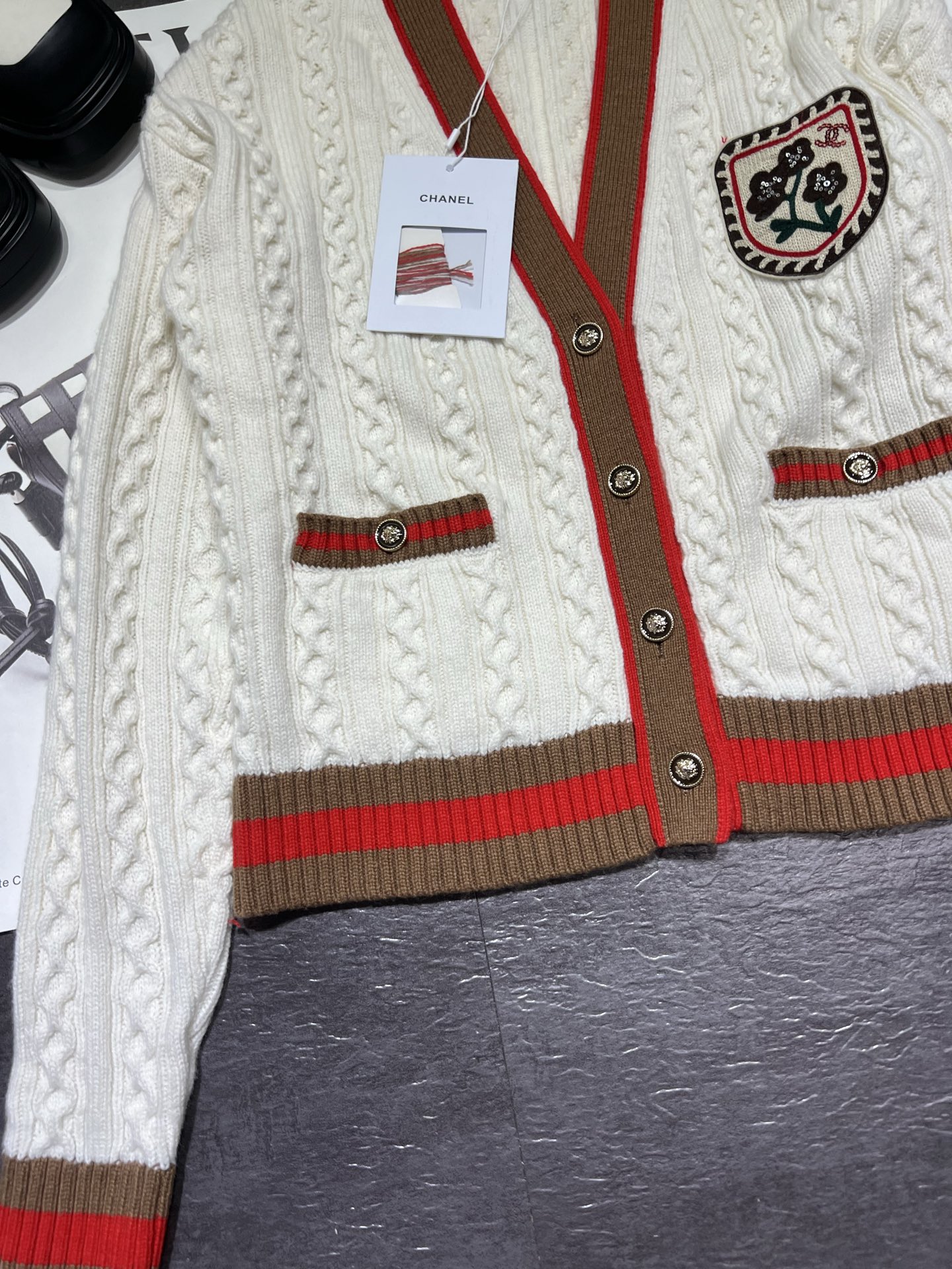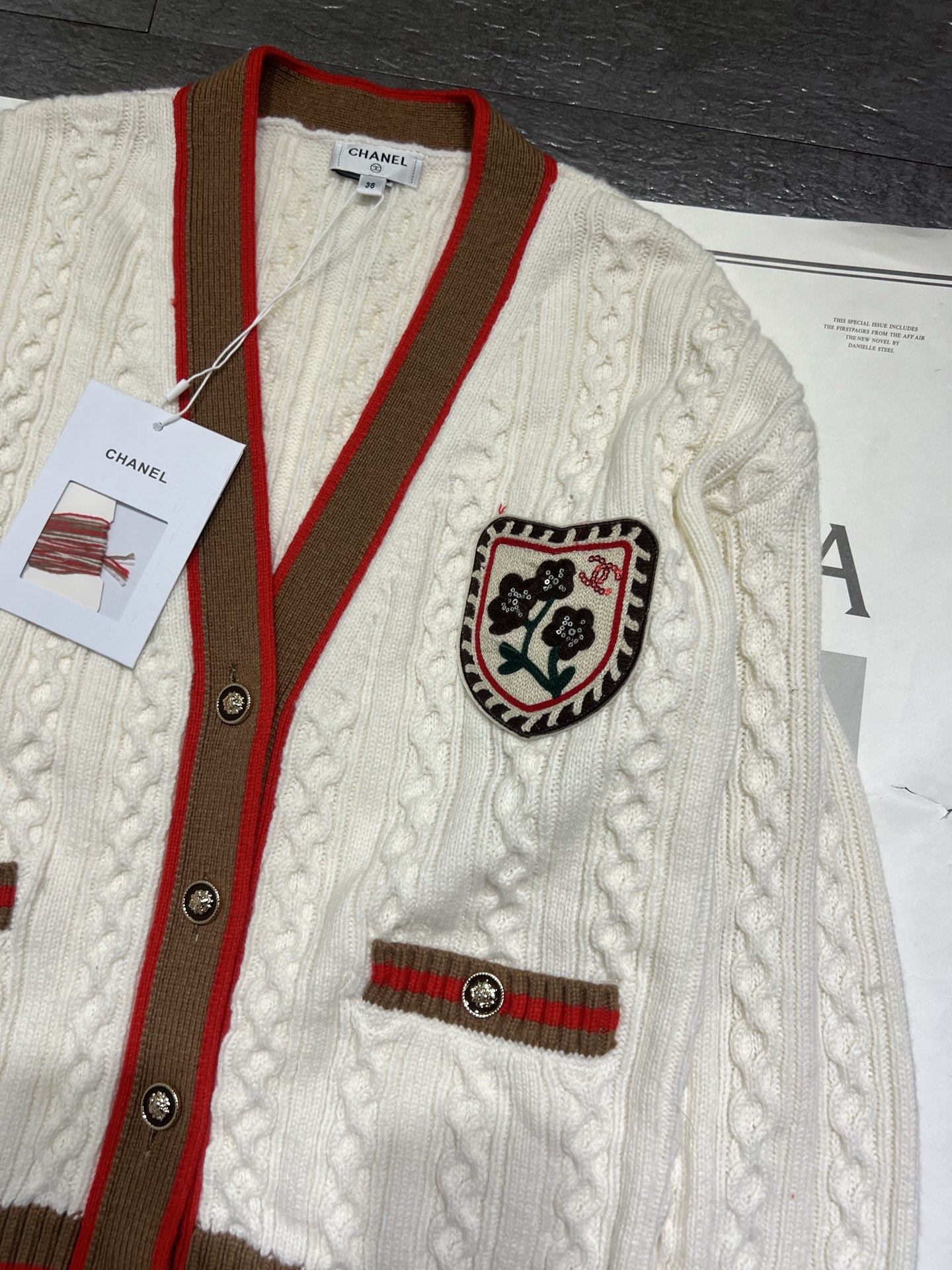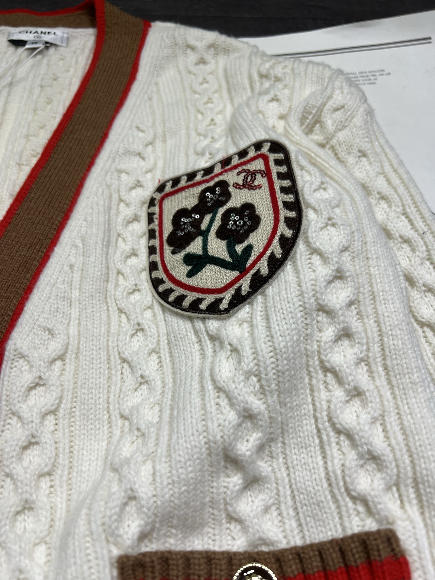 シャネル(CHANEL) 26C 早春コレクション 爆発的人気モデル ホワイトアカデミックニットカーディガン