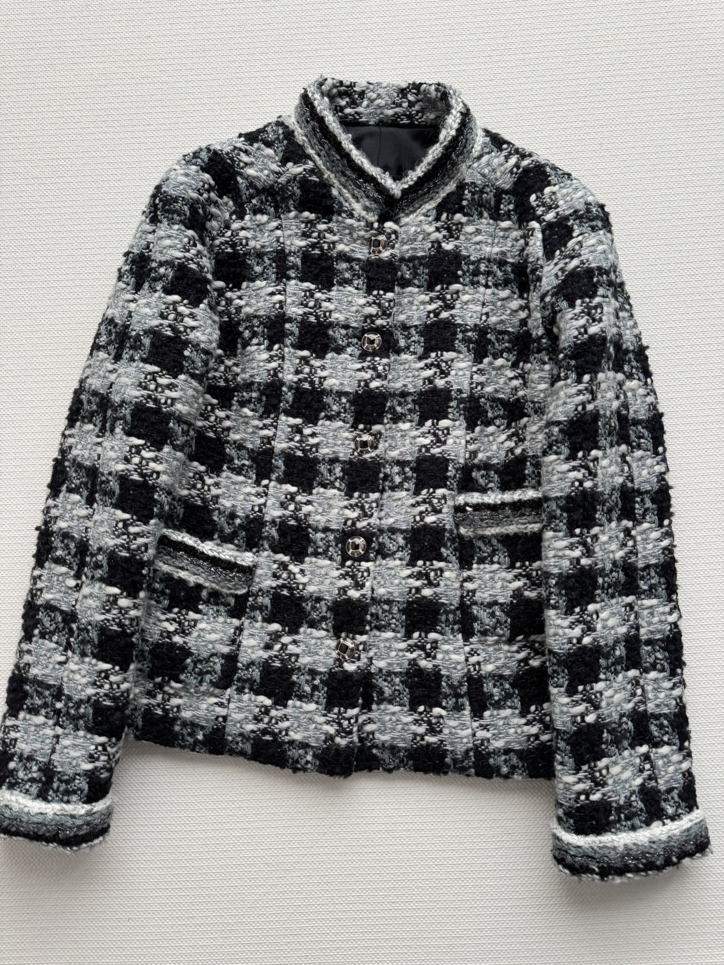 ・シリーズの特別性:2025年秋冬コレクションの「フレンチシャネルスタイル」シリーズから登場した新作。ブランドの象徴である「クラシックツイード」に、70年代のレトロチェックを融合させた「唯一無二のテクスチャー」が、コレクター垂涎の逸品