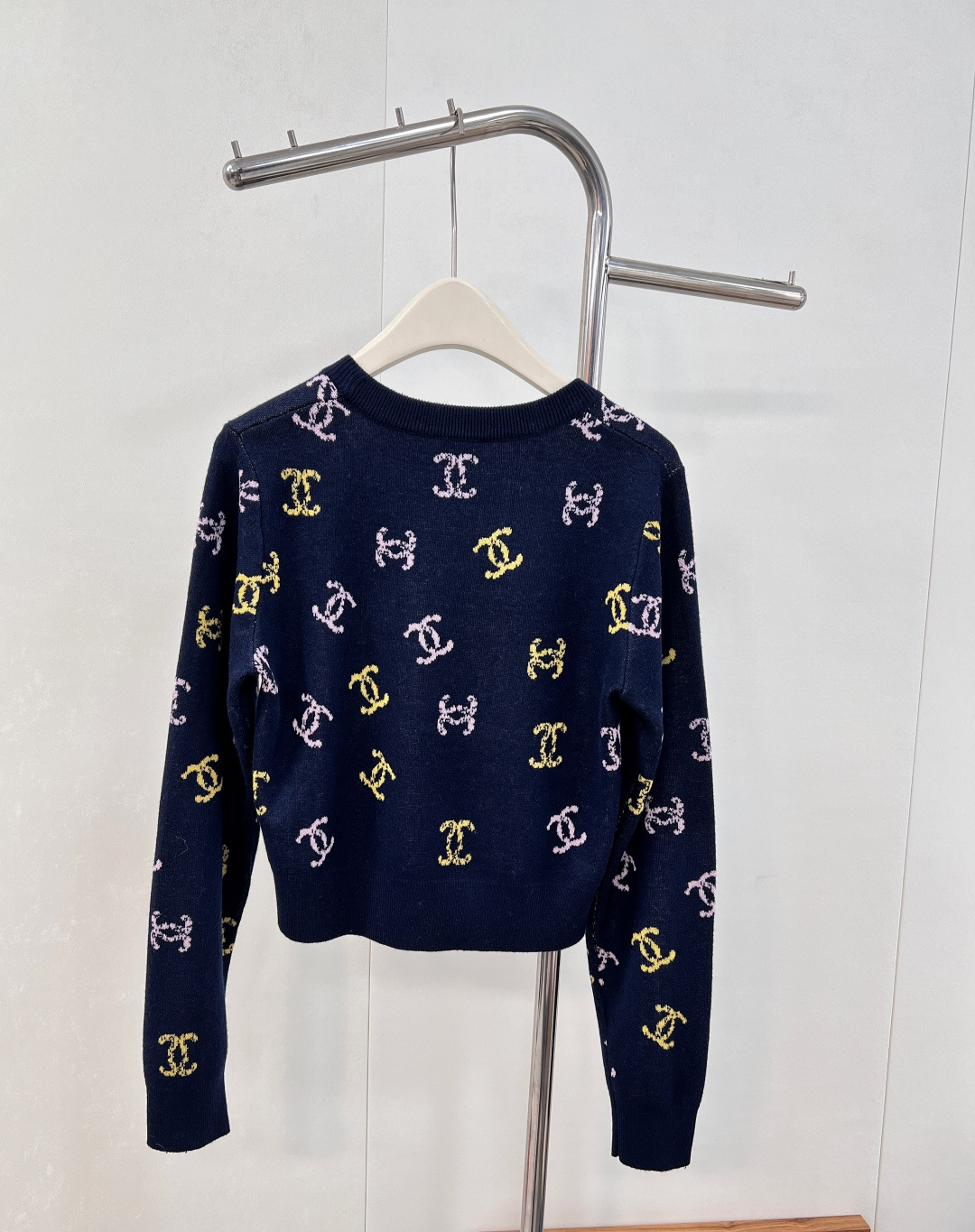 シャネルの象徴である「ダブルCロゴ」を全身に散りばめた、遊び心溢れるデザイン。コントラストカラー(撞色)を巧みに組み合わせ、クラシックな「シャネルスタイル」に「ラフで可愛い」現代的なニュアンスを加えた、秋冬の主役級ニットです。