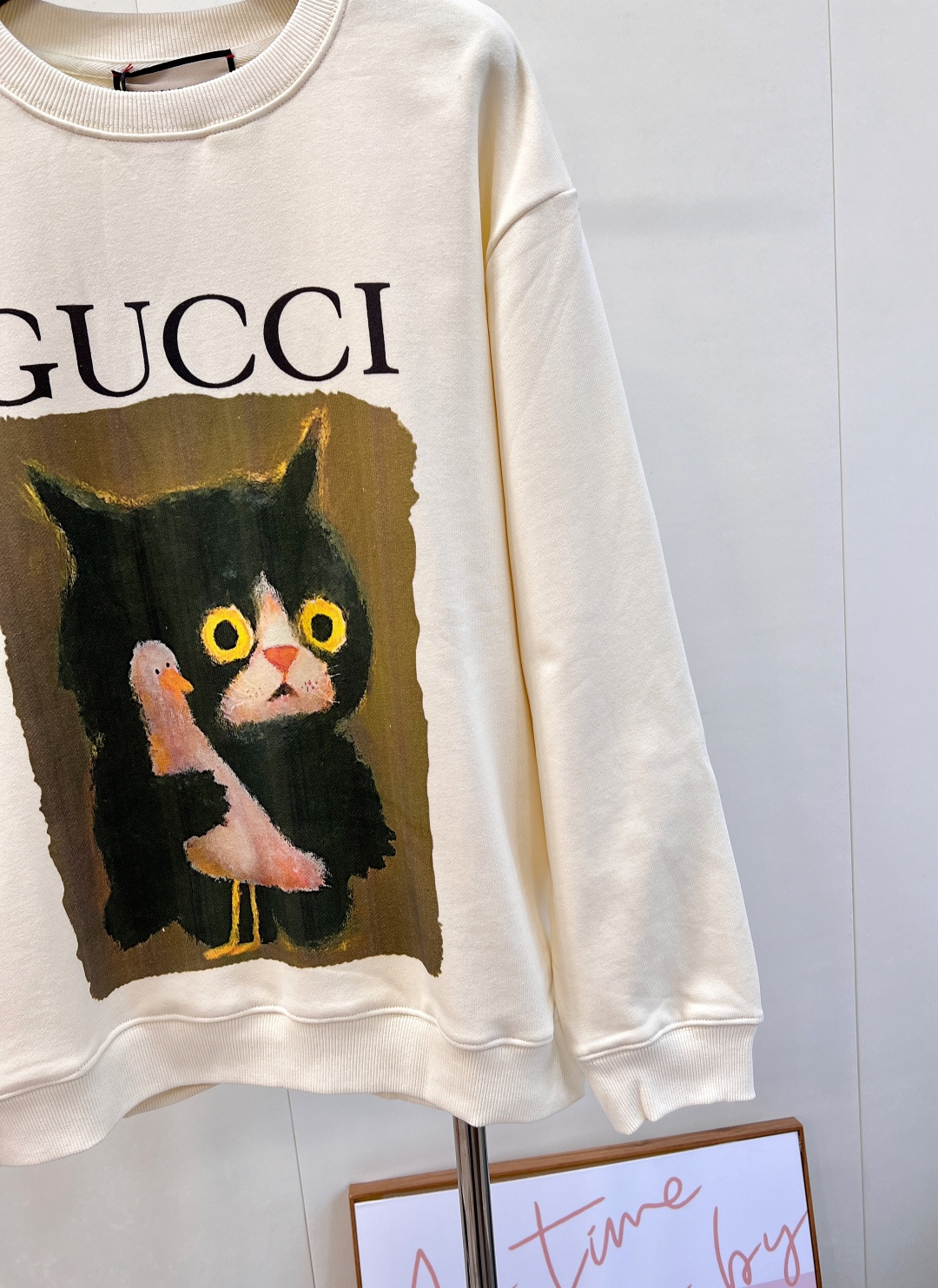 【GUCCI】早秋新作 油絵風猫プリントクルーネックスウェットシャツ|減齢アカデミー必須アイテム