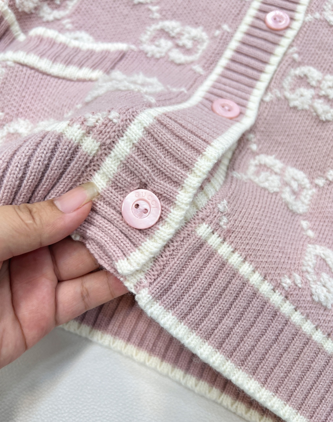 「GGジャカード柄が繊細で、触ると高級感が伝わってきます。Mサイズを着用したところ、Vネックが首元をスッキリ見せてくれて、同僚から『今日のカーディガン、センス良い!』と褒められました♪ ウール素材が暖かくて、秋から冬にかけて活躍しそうです!」