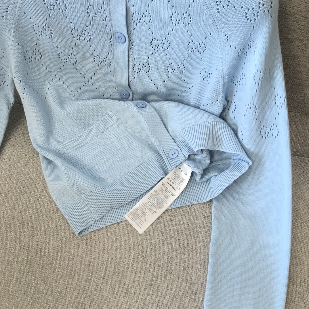 【GUCCI】独占販売 透かしひし形模様ニットカーディガン|GGアルファベット交錯柄が紡ぐ「時代を超えたエレガンス」 デザインの魅力:GGロゴと透かし菱纹が奏でる「唯一無二の雅やかさ」