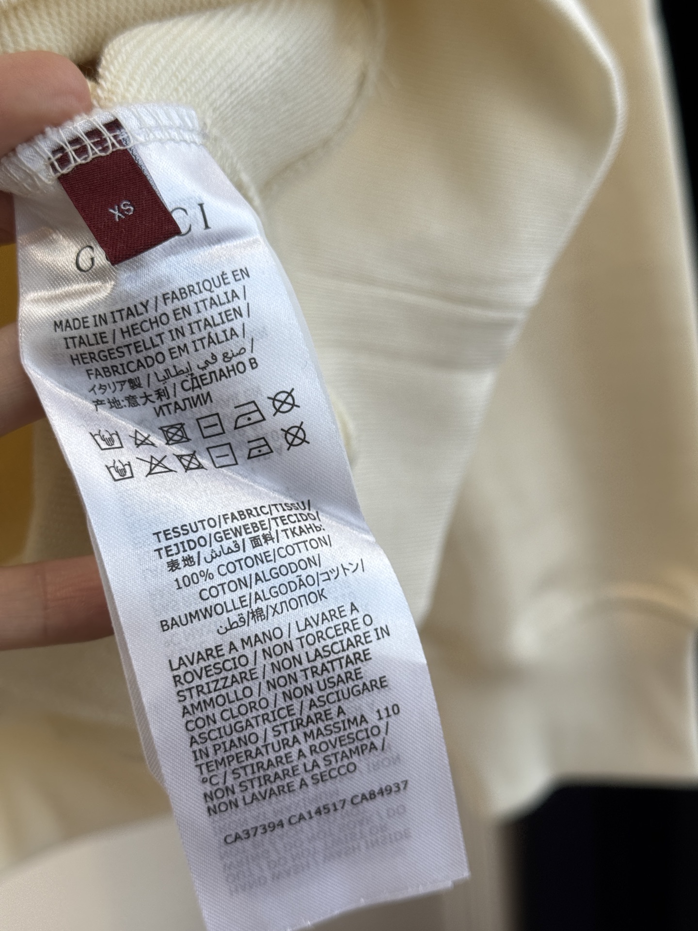 ・左胸刺繍のダブルGロゴ:胸元に施されたGUCCIの象徴的なダブルGロゴは、立体感のある刺繍技法で表現。シンプルでありながらも目を引くデザインが、「一目でGucciと認識される」 高い識別度を生み出し、ラグジュアリー感をさりげなく主張します。ロゴの縫製は二重ステッチで補強され、洗濯による剥がれにも強く、長期間美しさを保ちます。